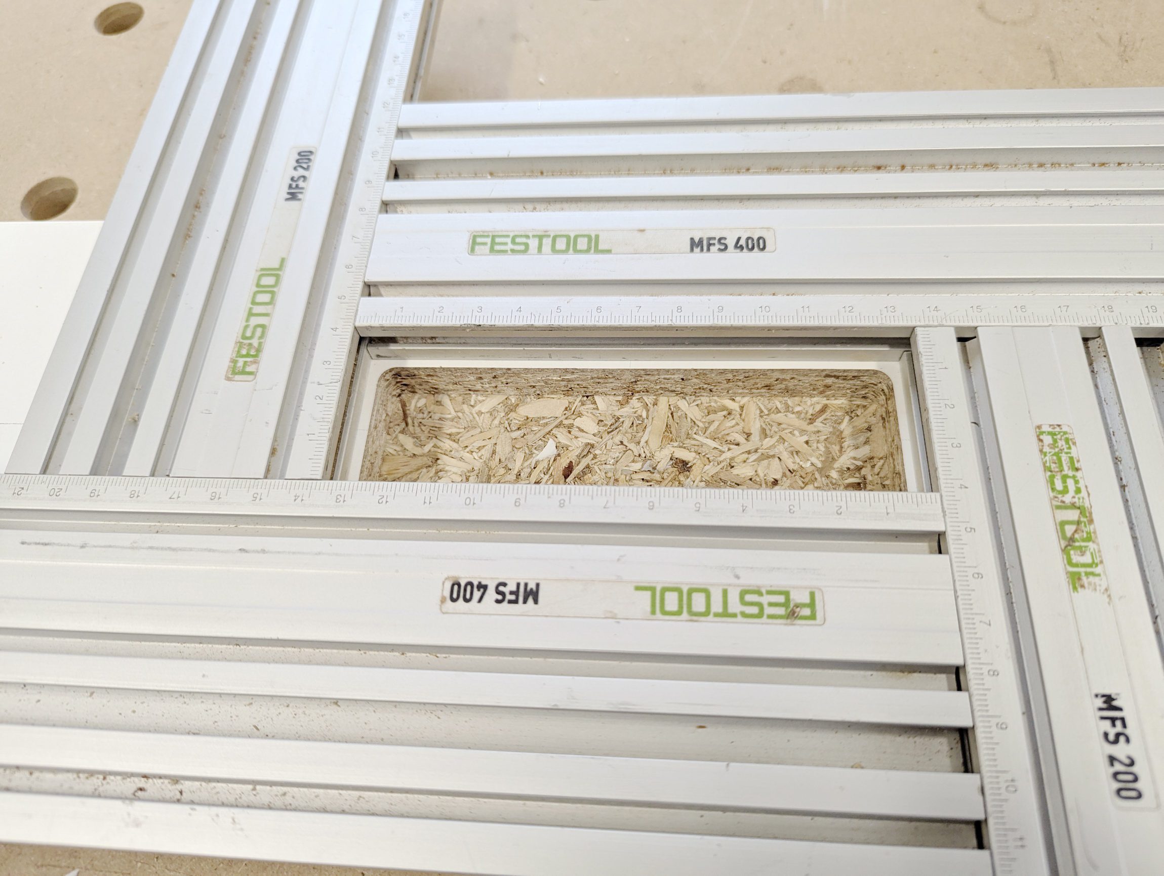 Schon vor Jahren hatte ich mir die Festool Frässchablone MFS 400 gekauft. Damals noch zu einem hohen, aber noch akzeptablen Preis. Das ist heute anders. Nie würde ich Euro 345,00 für dieses Teil ausgeben.