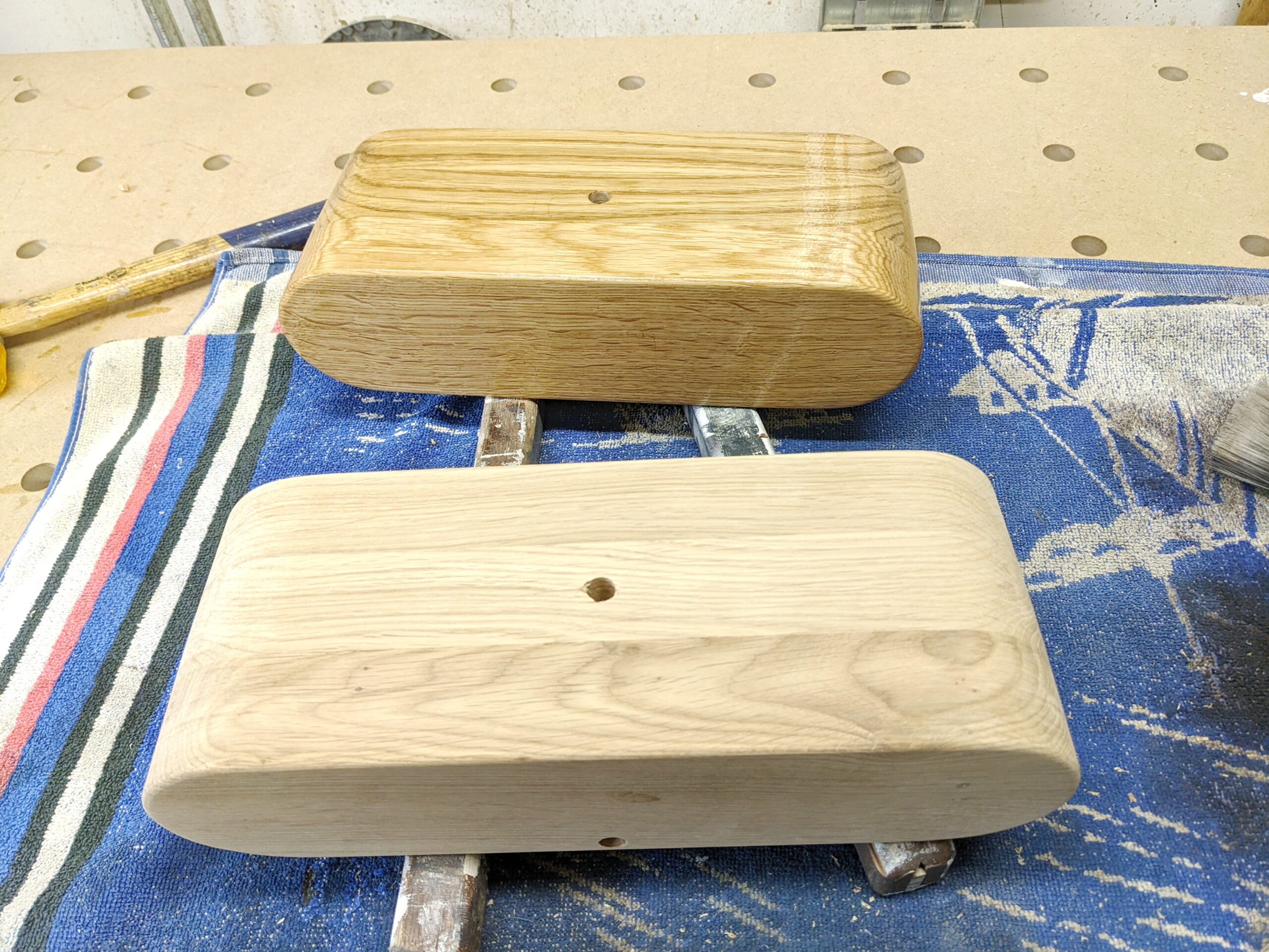 Die Außenkanten habe ich am Frästisch mit einem 5-mm-Abrundfräser sauber gerundet. Anschließend wurde der Holzblock – inklusive Kanten – erst mit 150er, dann mit 220er Schleifpapier glatt geschliffen.
