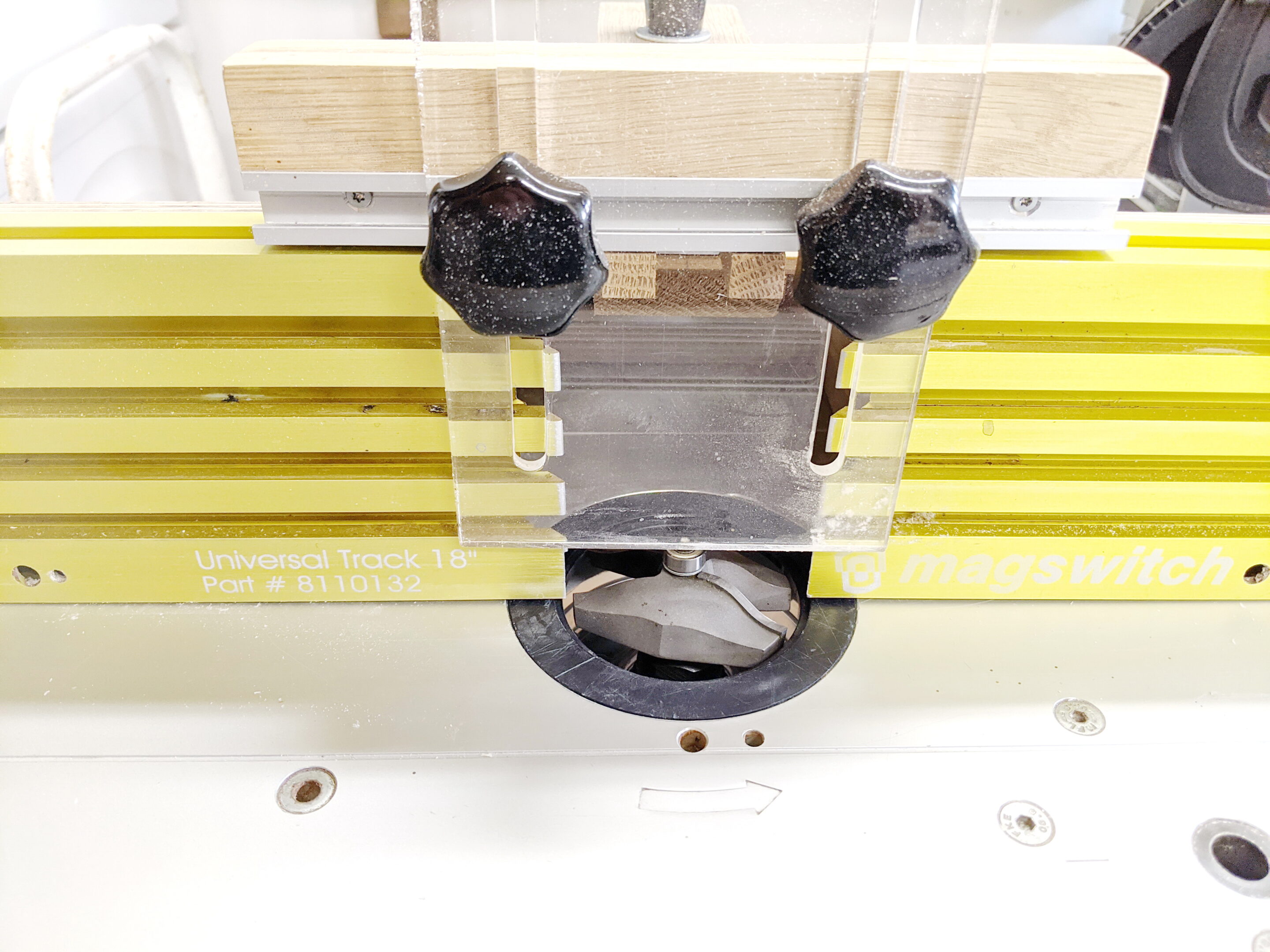 Die Rundungen an den Kanten habe ich auf dem Frästisch durchgeführt. Sicher könnte man sie auch mit einer Oberfräse freihändig herstellen, doch da das Werkstück klein ist, lässt es sich kaum sicher fixieren.