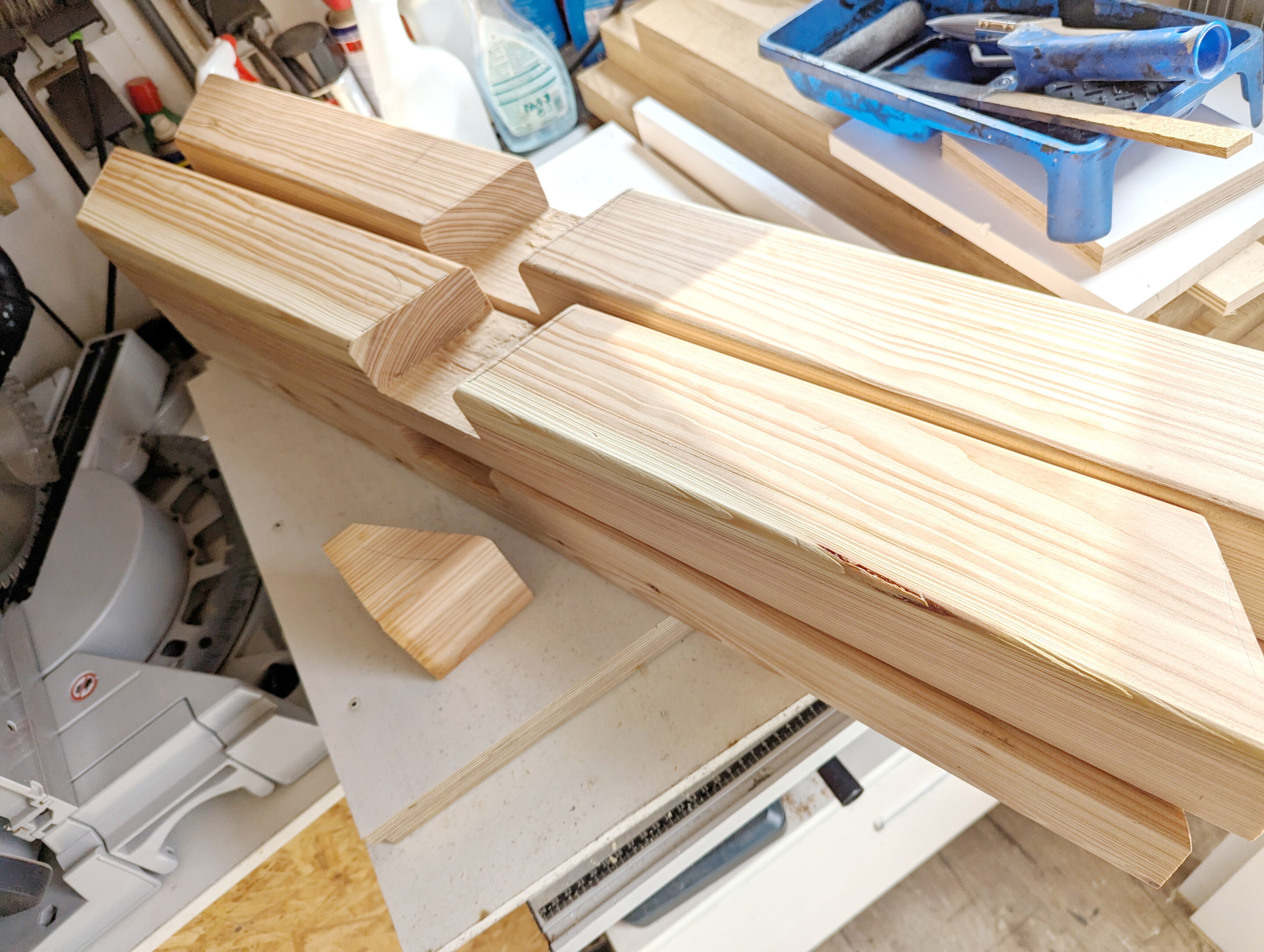 Die einzelnen Teile wurden vom Sägemeister meines Holzhändlers auf exakte Maße zugeschnitten. Darauf kann ich mich immer verlassen.