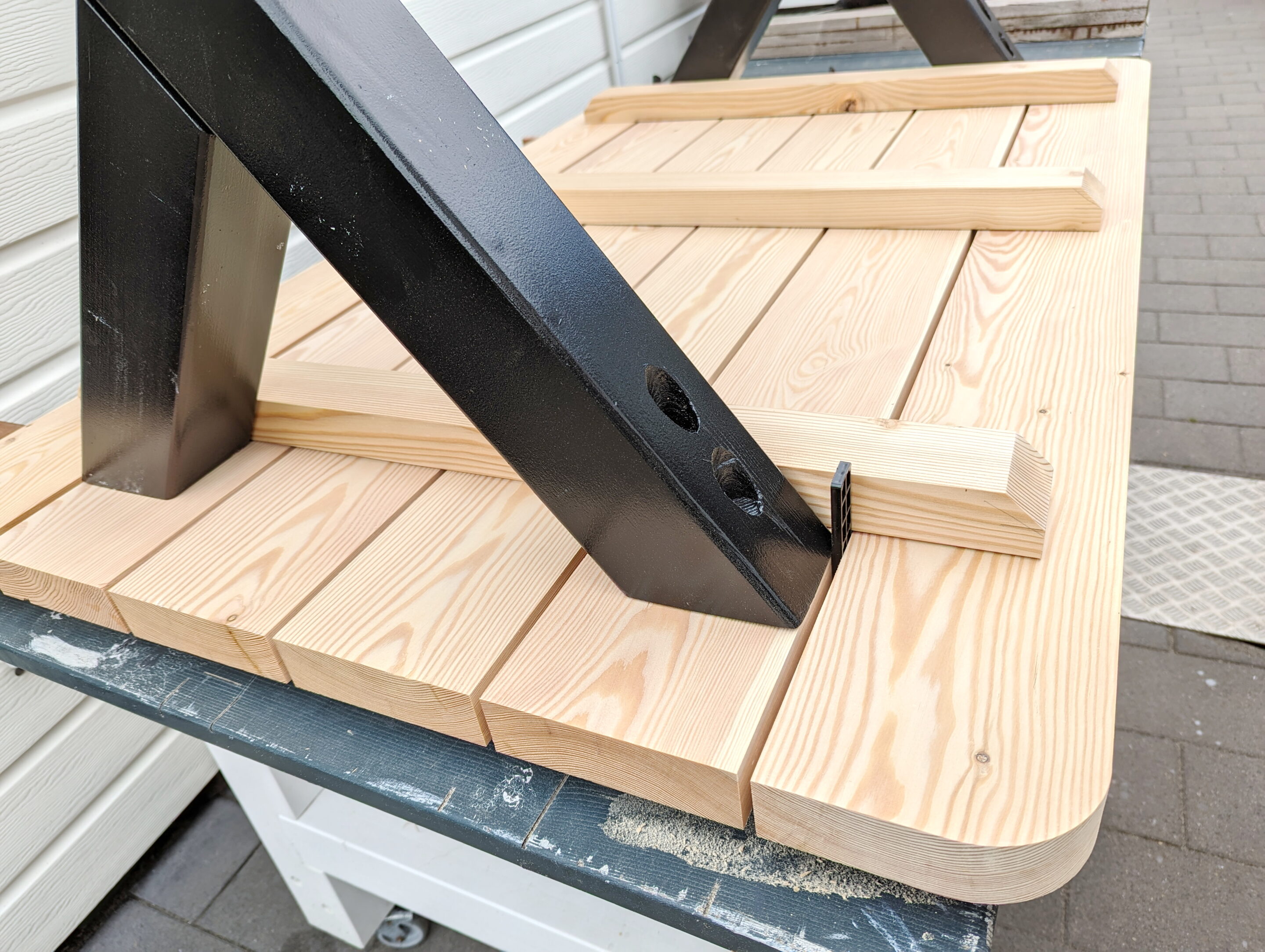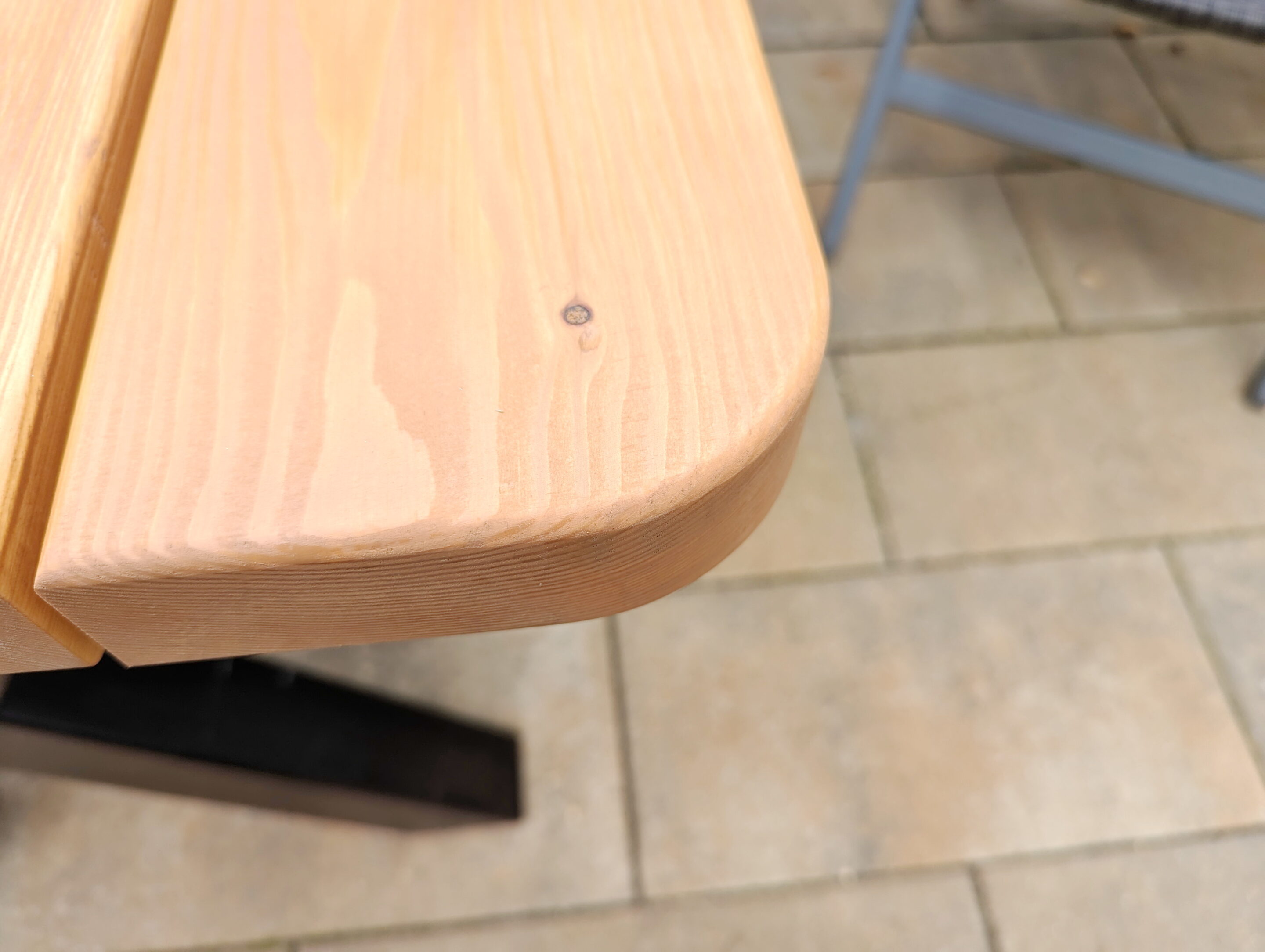 Lärche gibt es in der Regel nicht als Leimholzplatte – und genau das wollte ich für diesen Tisch auch nicht verwenden. Passende Lärchenbretter waren jedoch verfügbar, und zwar im Querschnitt 45 × 140 mm. Damit sind sie ideal für eine massive Tischplatte geeignet.