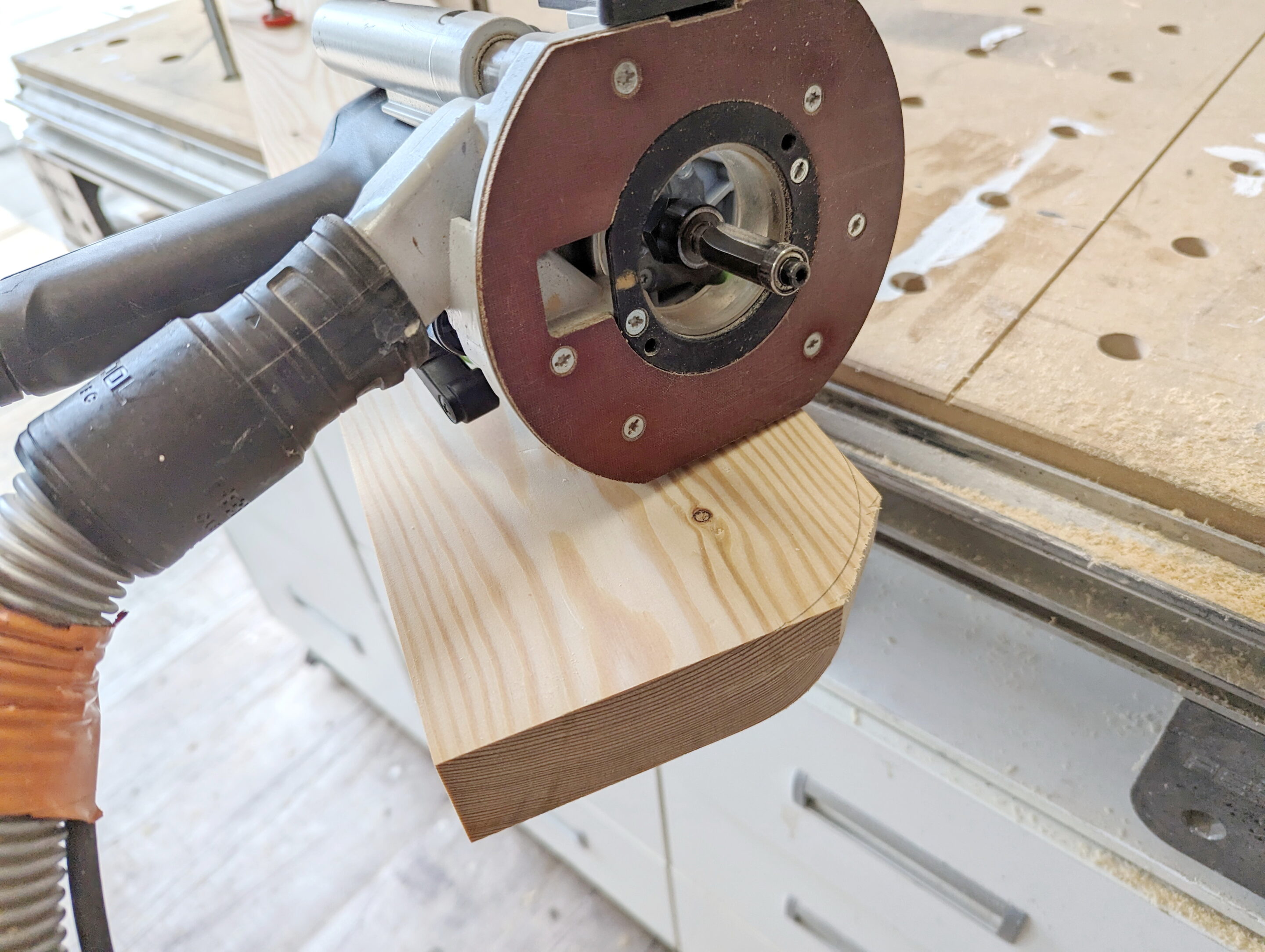 Die große Rundung habe ich mit einer selbst gebauten Frässchablone und der Festool OF 1010 angebracht. Die KREG-Frässchablonen empfand ich nach einem Test für meine Zwecke eher als unbrauchbar.