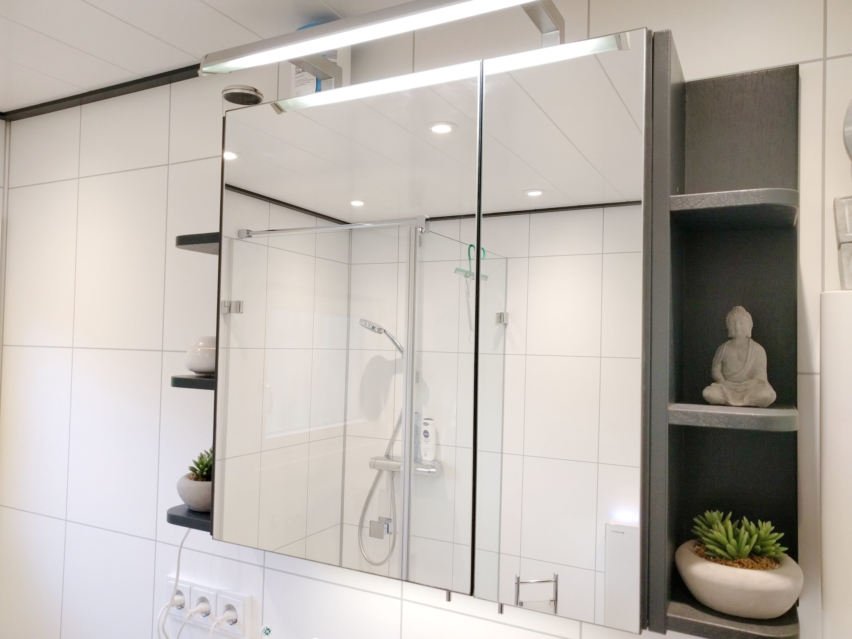 Nach der Renovierung unseres Badezimmers haben wir den alten Spiegelschrank weiterverwendet. Er ist von guter Qualität, wirkte an der Wand jedoch etwas kahl.