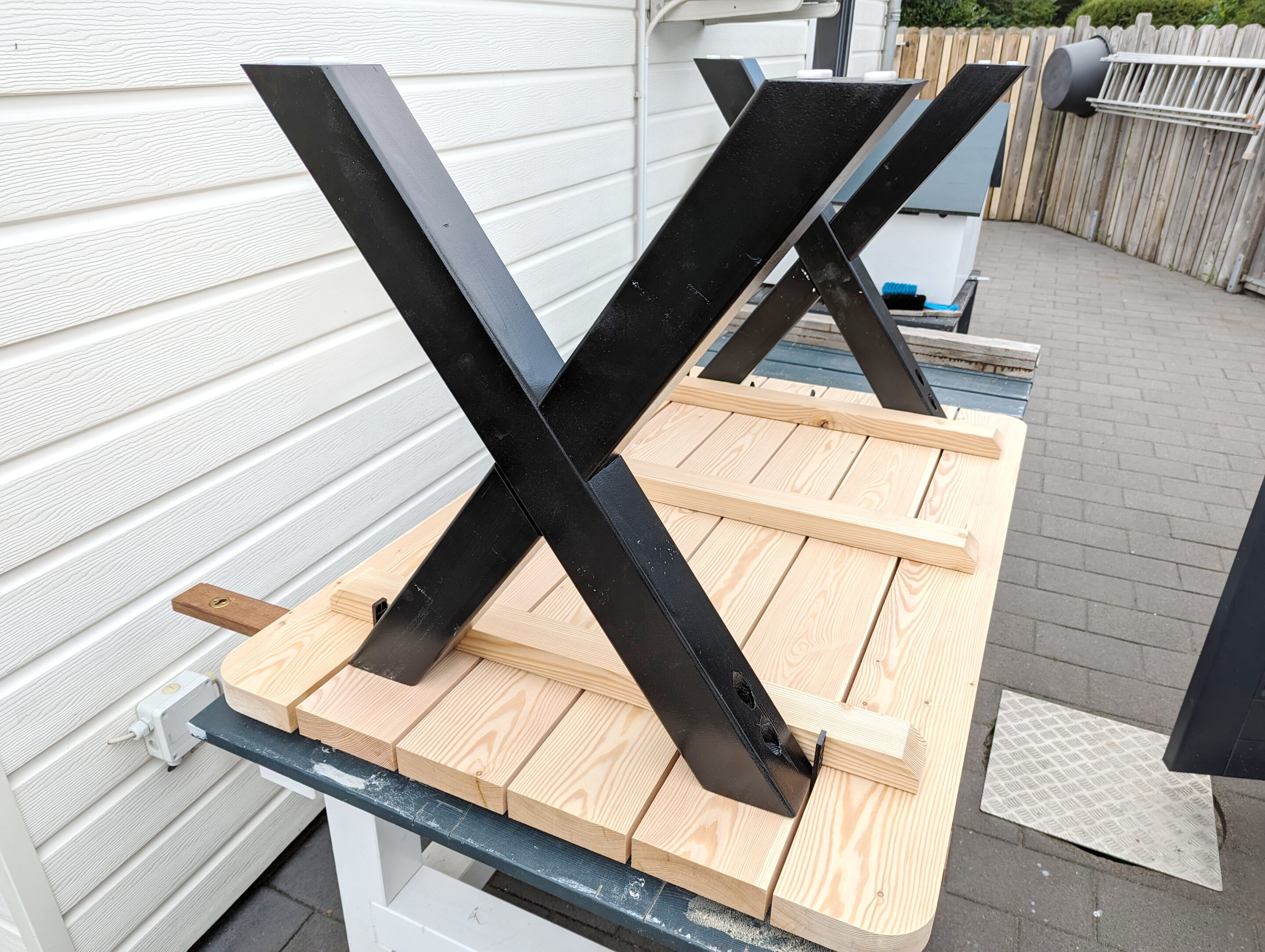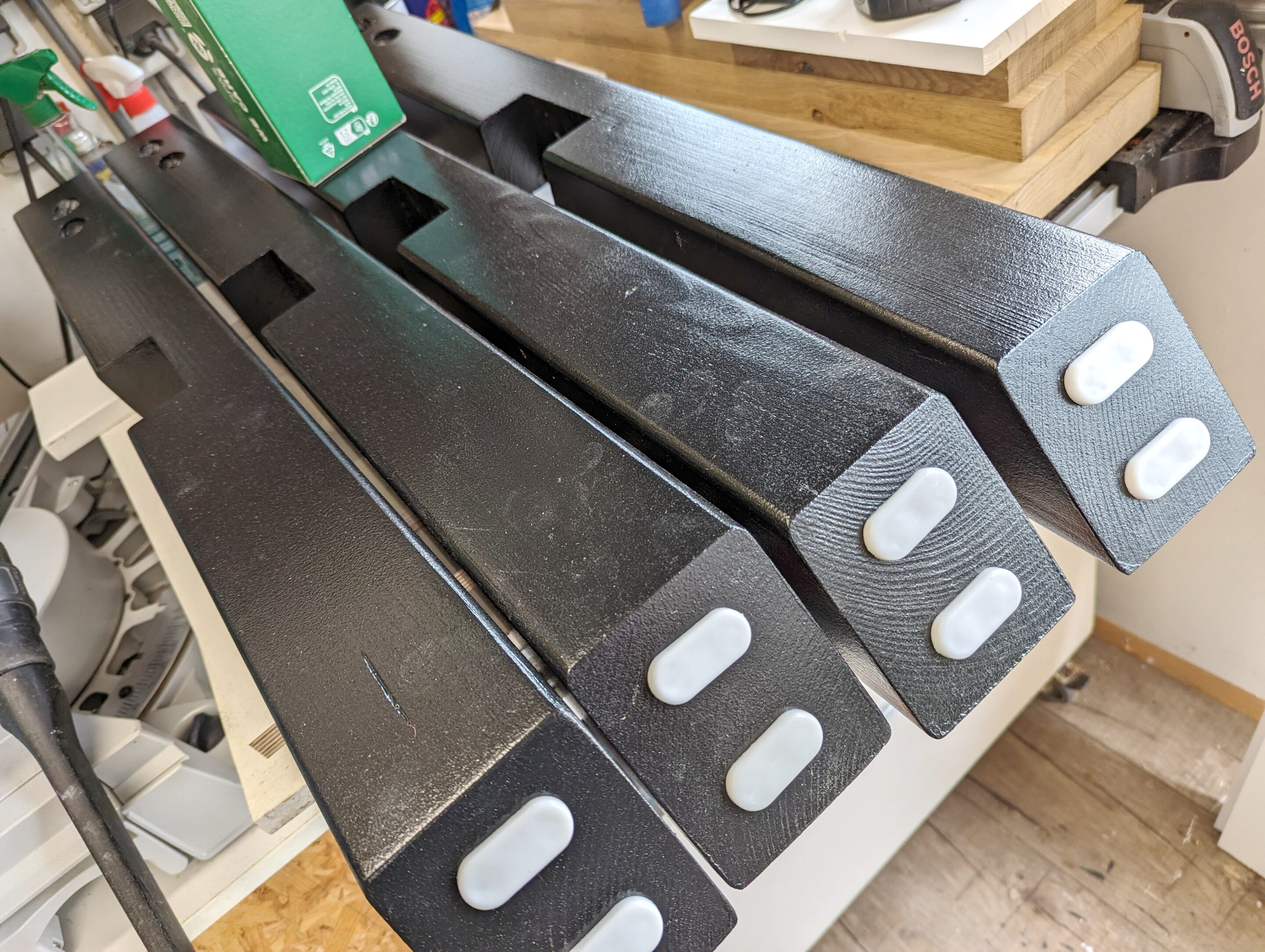 Die Tischbeine habe ich deckend schwarz lackiert. Zuvor wurden sie selbstverständlich grundiert und anschließend mehrere Schichten Qualitätslack aufgetragen.