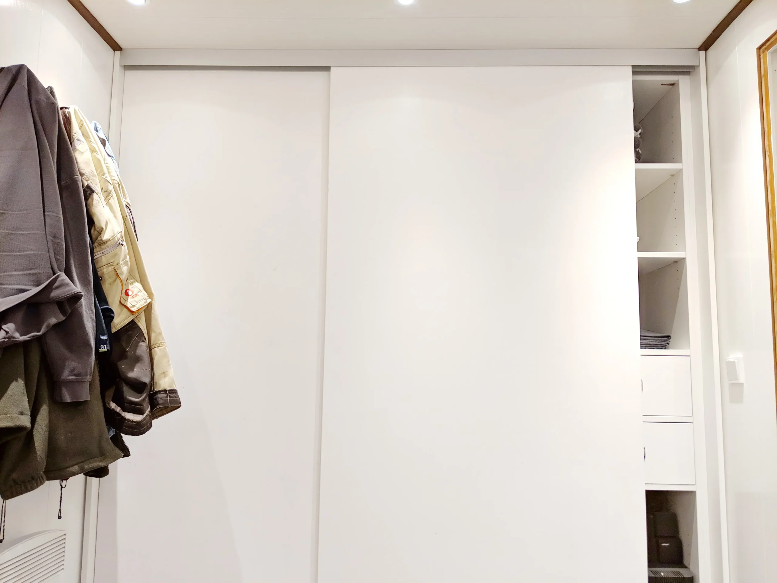 Die Schiebetüren sind 38er Dreischichtplatten und recht schwer bei jeweils 2 qm Fläche.