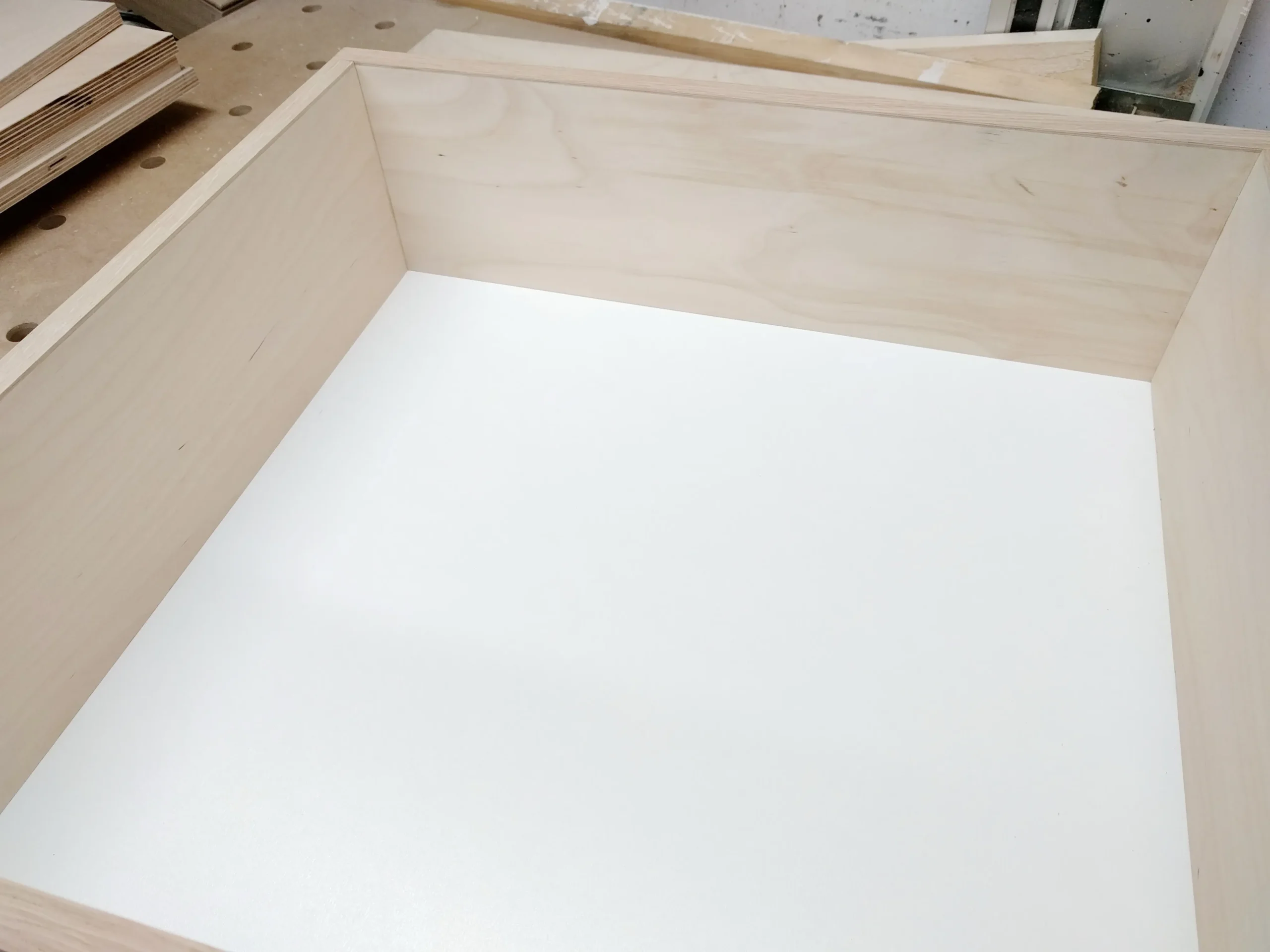 Sicher kann man den Rahmen auch aus beschichteter 16mm Spanplatte bauen. Hier habe ich mich aber für Birke-Multiplex-Holz entschieden.