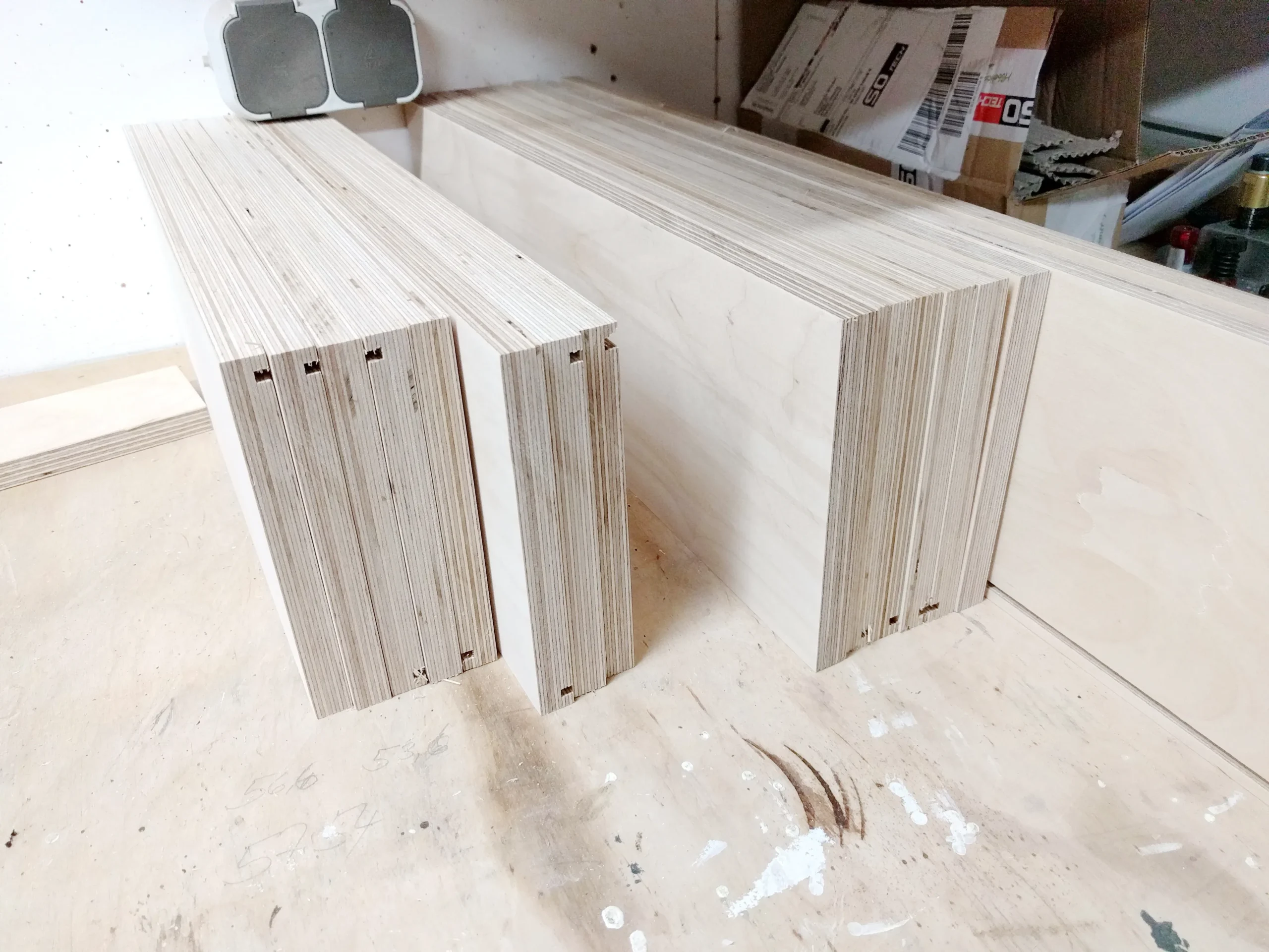 Die Nuten für den Boden konnte ich auf der Tischsäge einbringen.