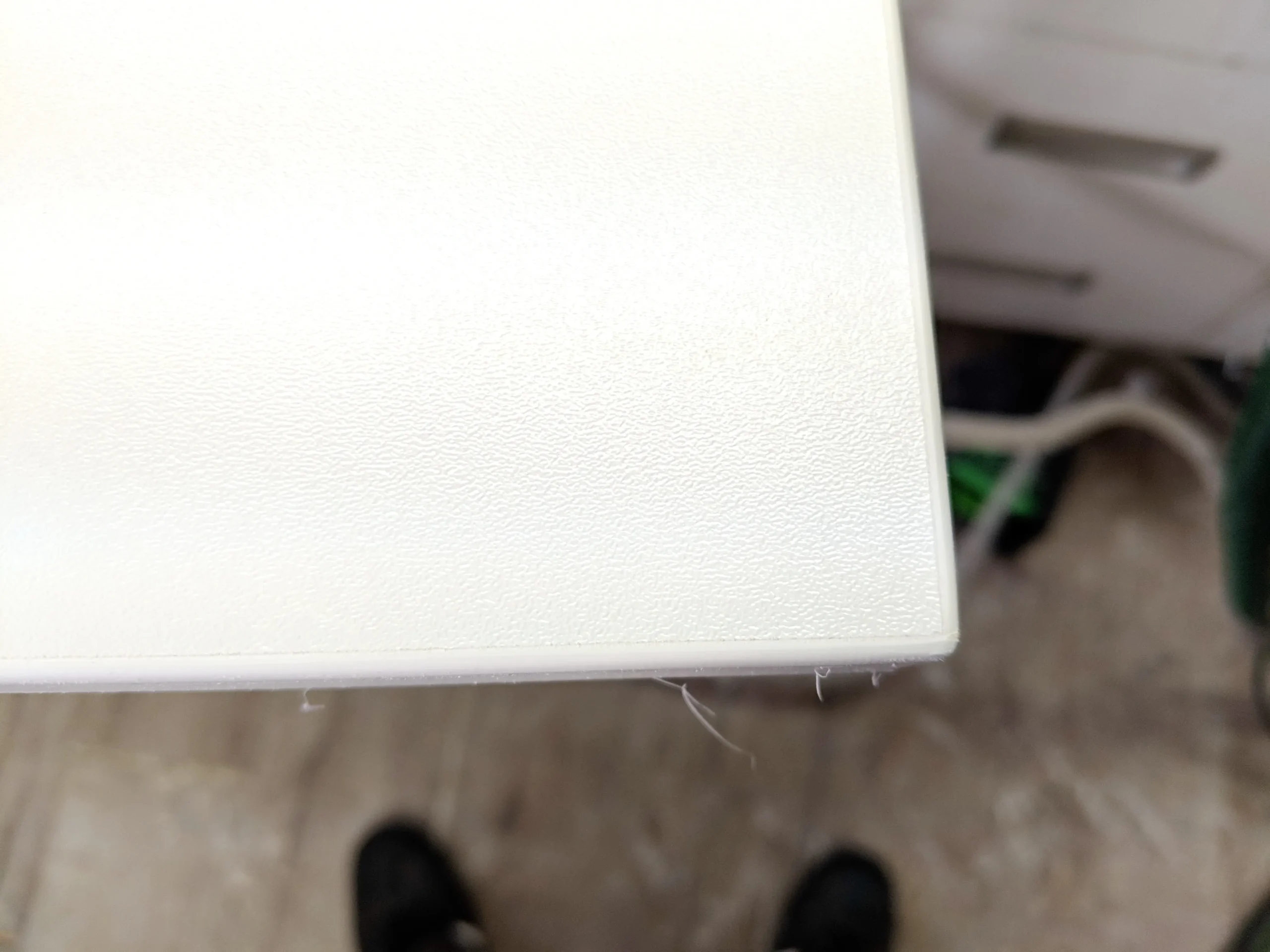 19mm beschichtete Spanplatte weiß, micro-beschichtet; also nicht glatt.