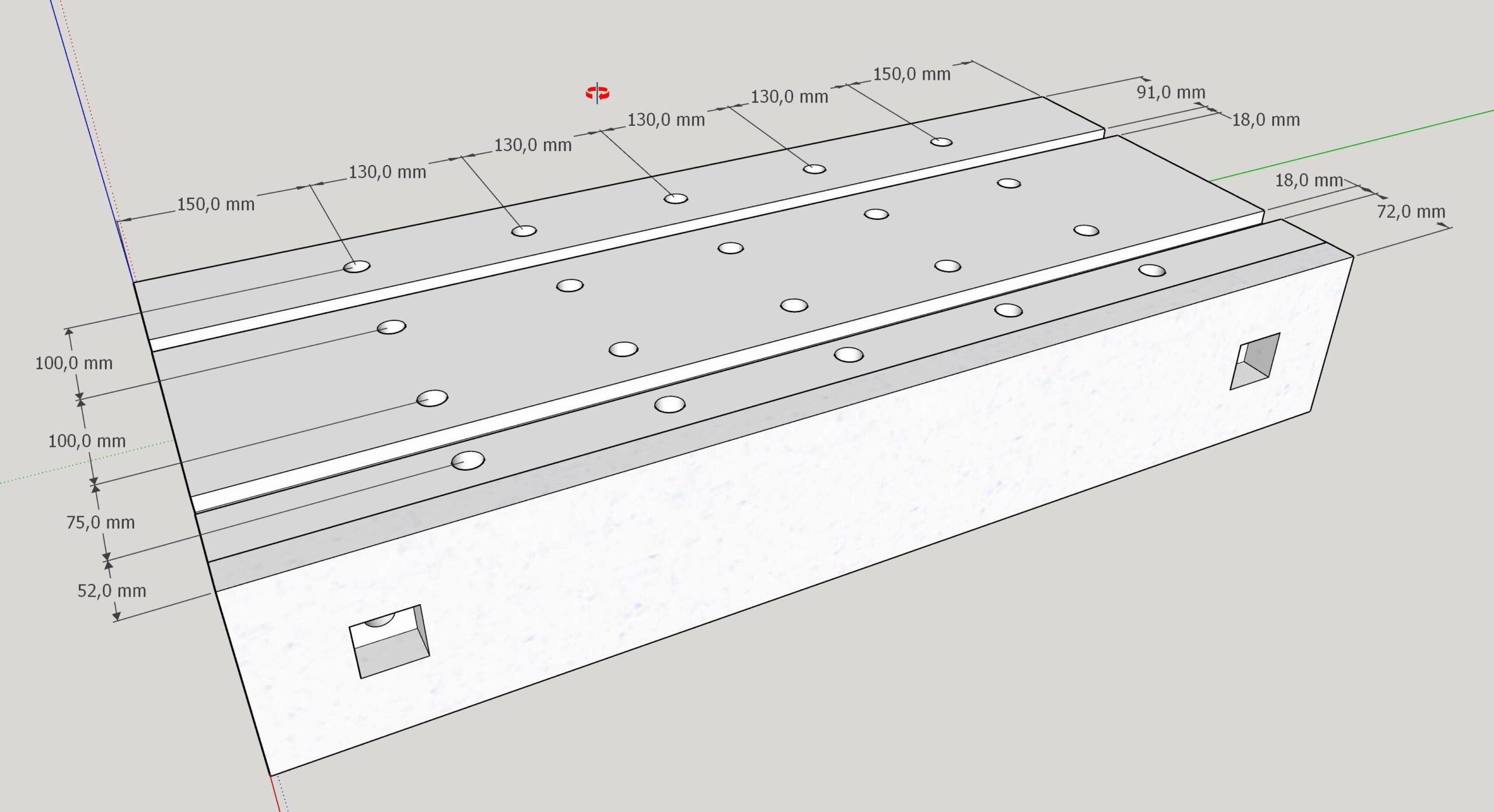 Alle Bohrungen haben nun einen Durchmesser von 20mm.