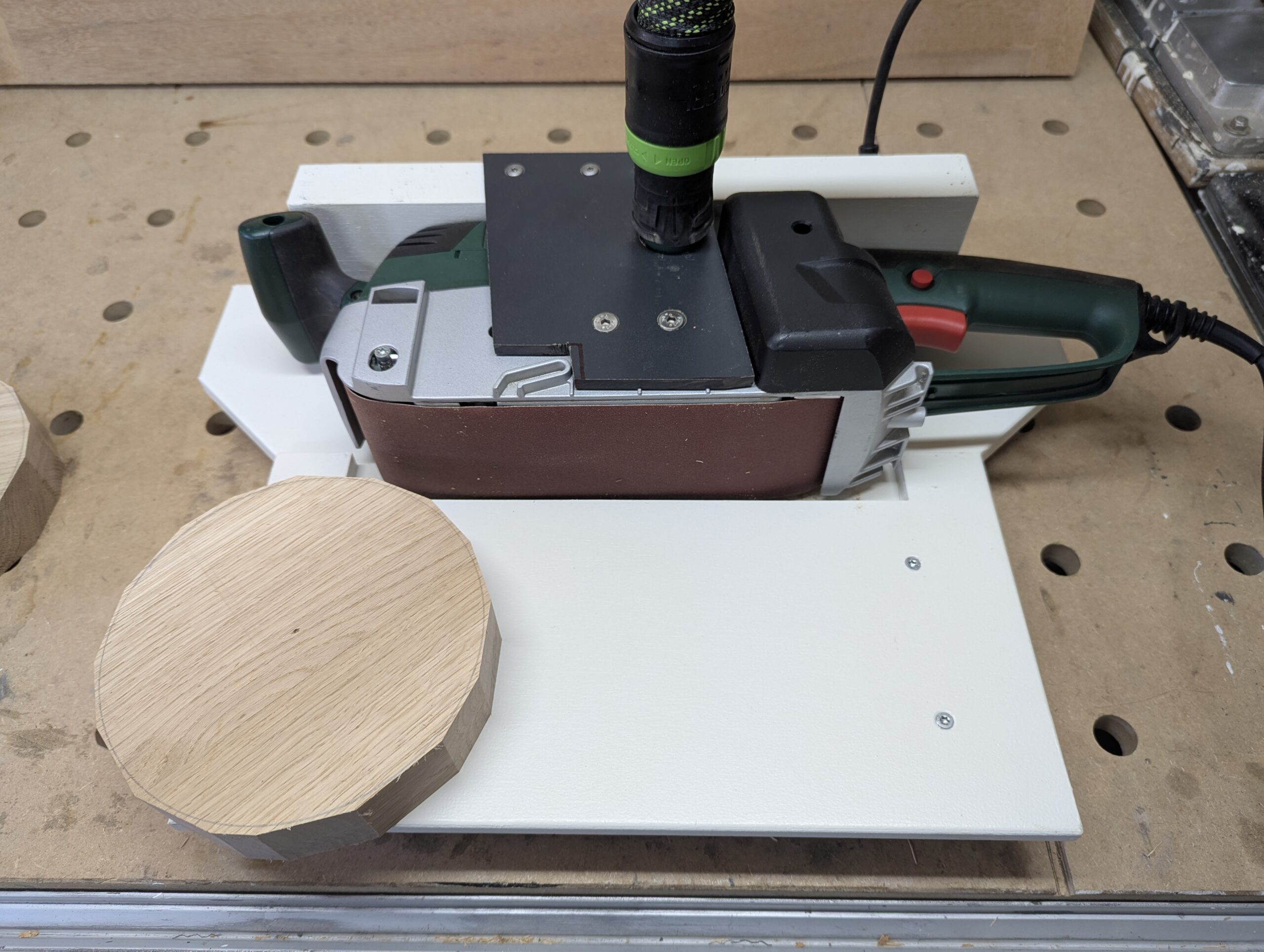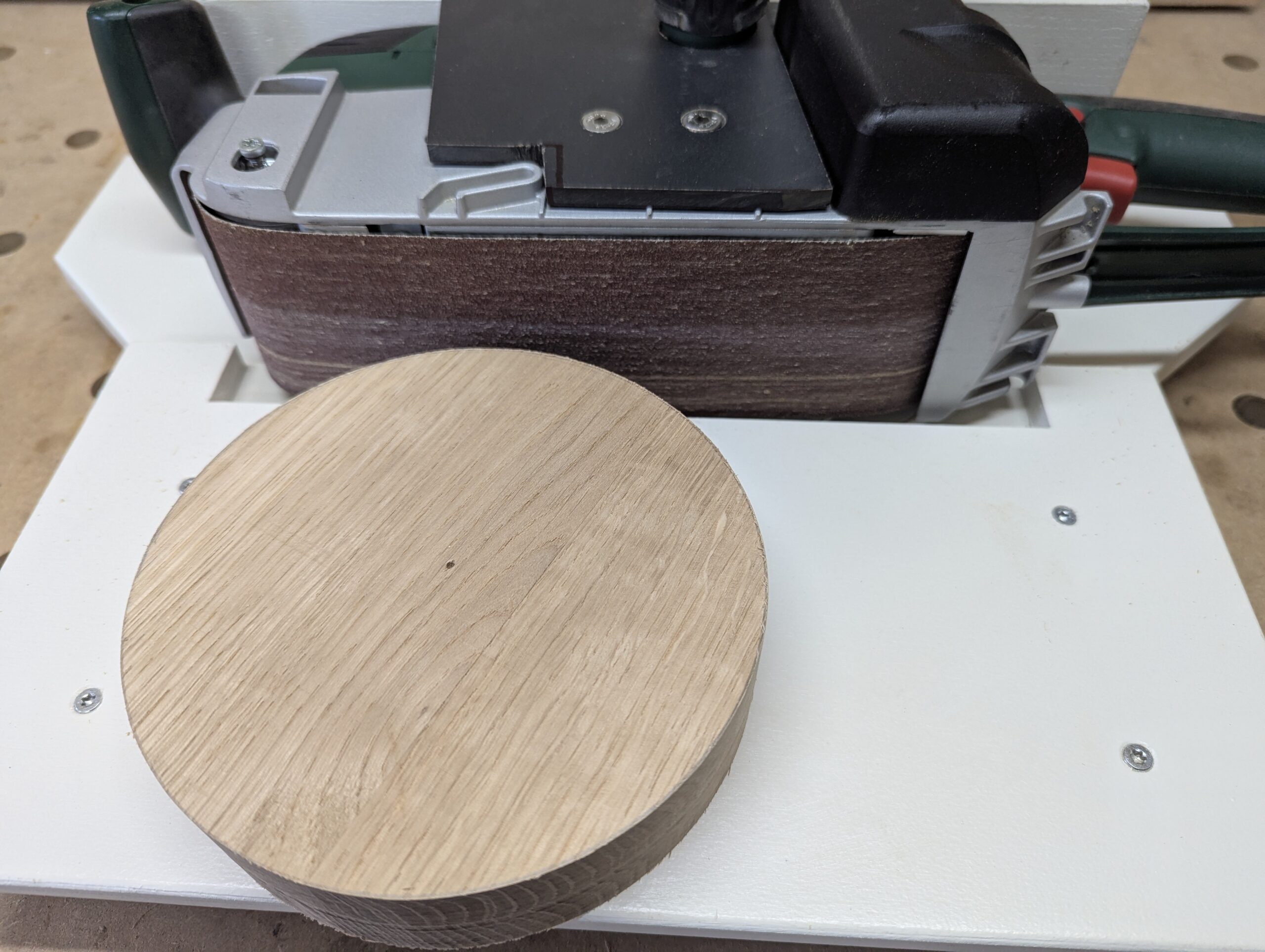 Jetzt kann sich der Bandschleifer in seiner neuen Station beweisen. Viel muss nicht mehr abgeschliffen werden.