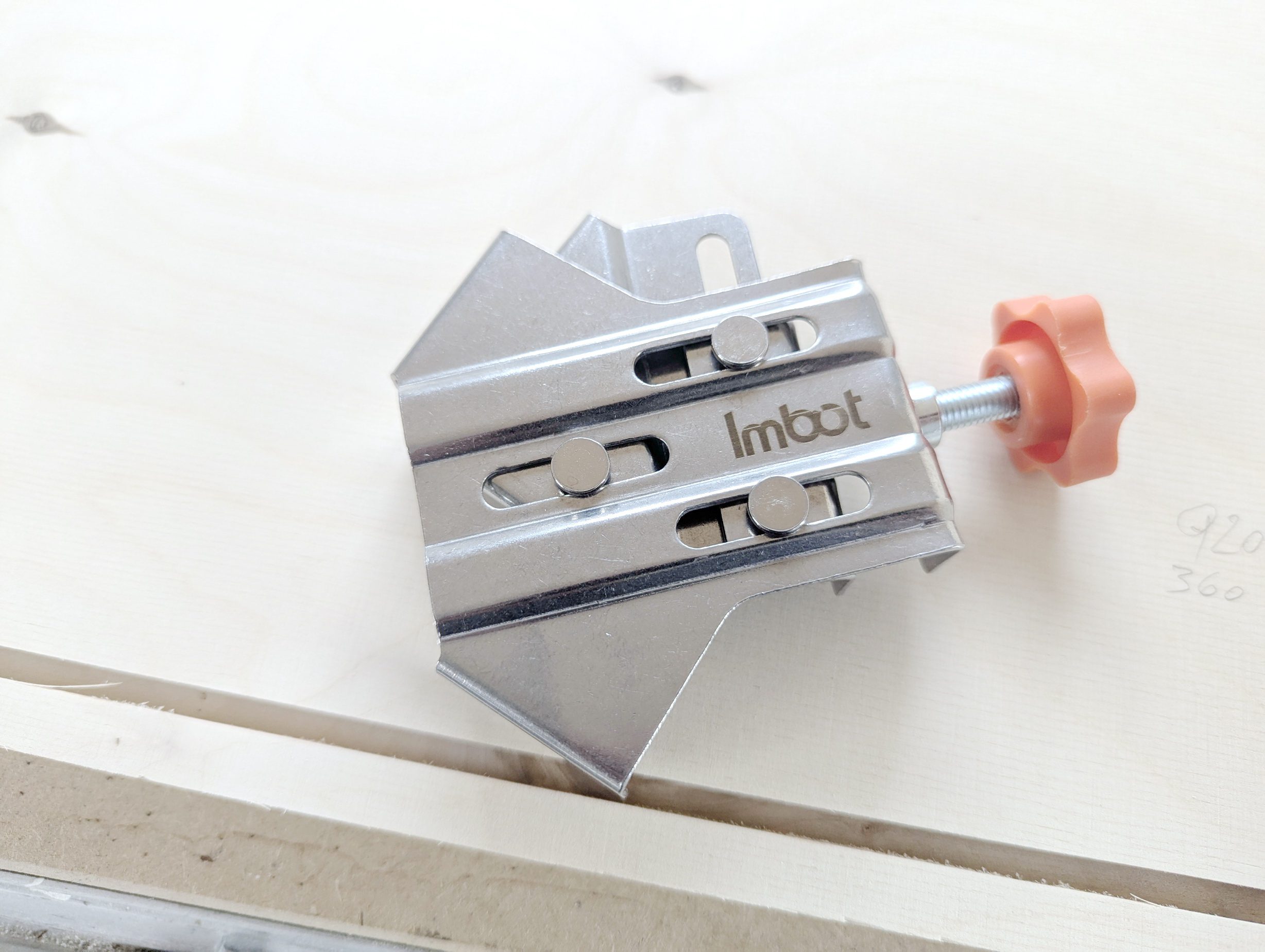 Heute habe ich die Teile beim Zusammenbau der Schubladen ausprobiert. Erwartet hatte ich, dass die Klemmen die Wände beim Zudrehen automatisch zentrieren. Das Ergebnis war enttäuschend: Die Klemme zieht zwar die Teile zusammen, zentriert sie aber nicht – und genau das wäre doch der wichtigste Zweck gewesen.