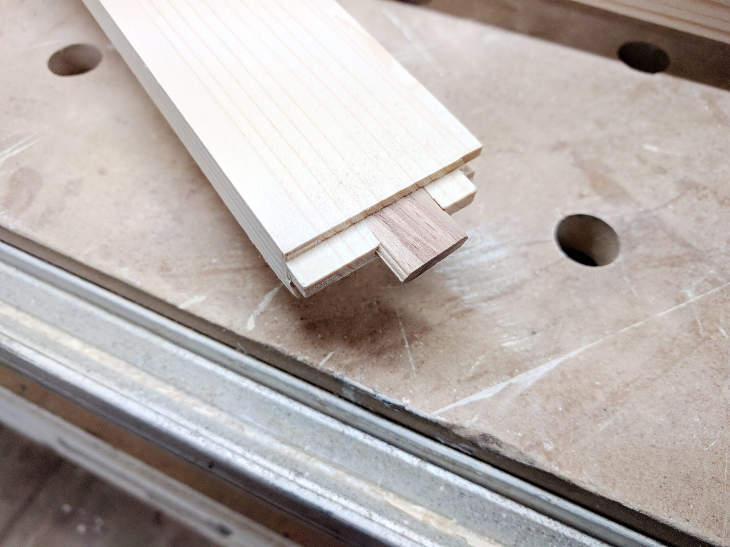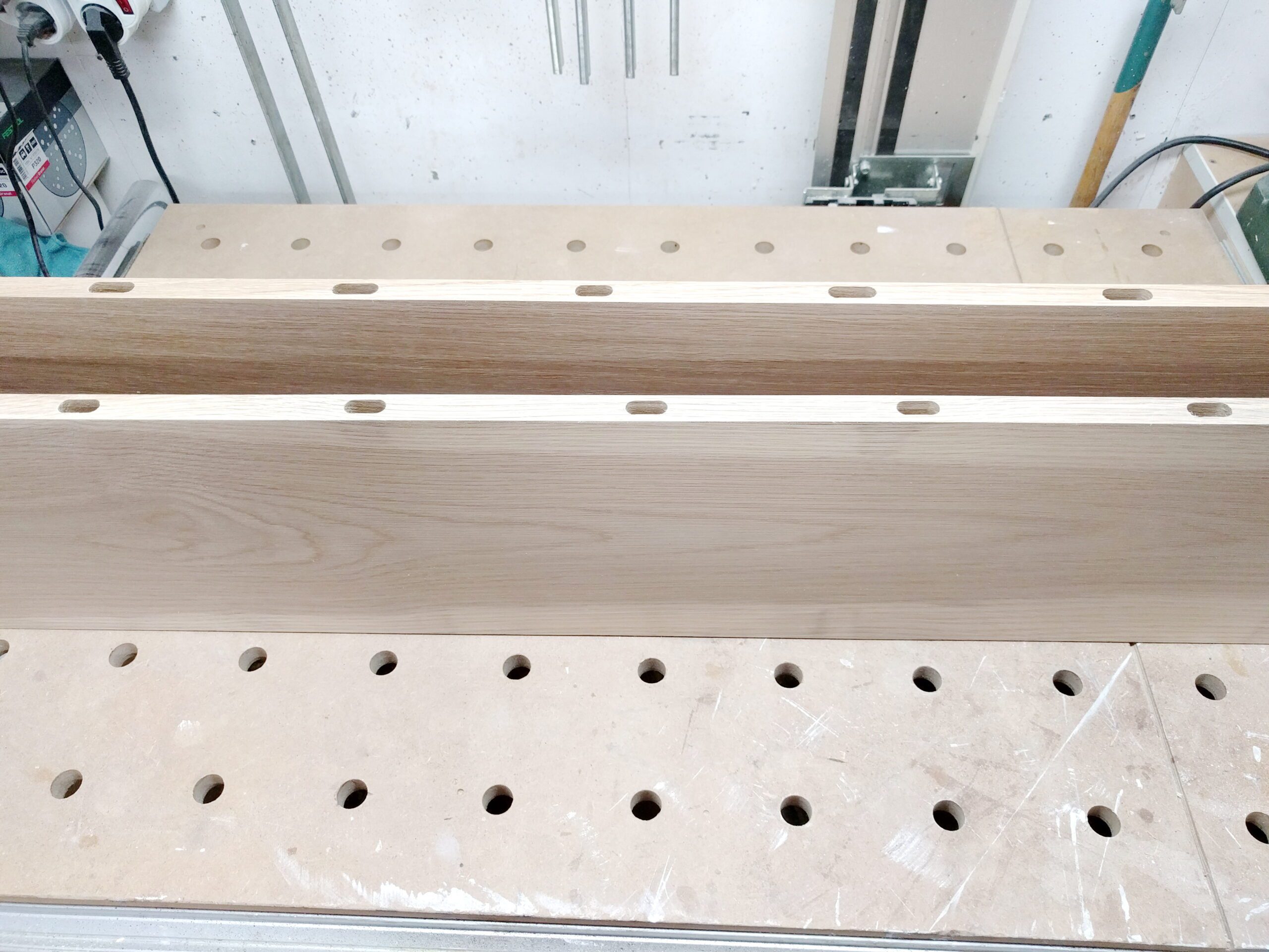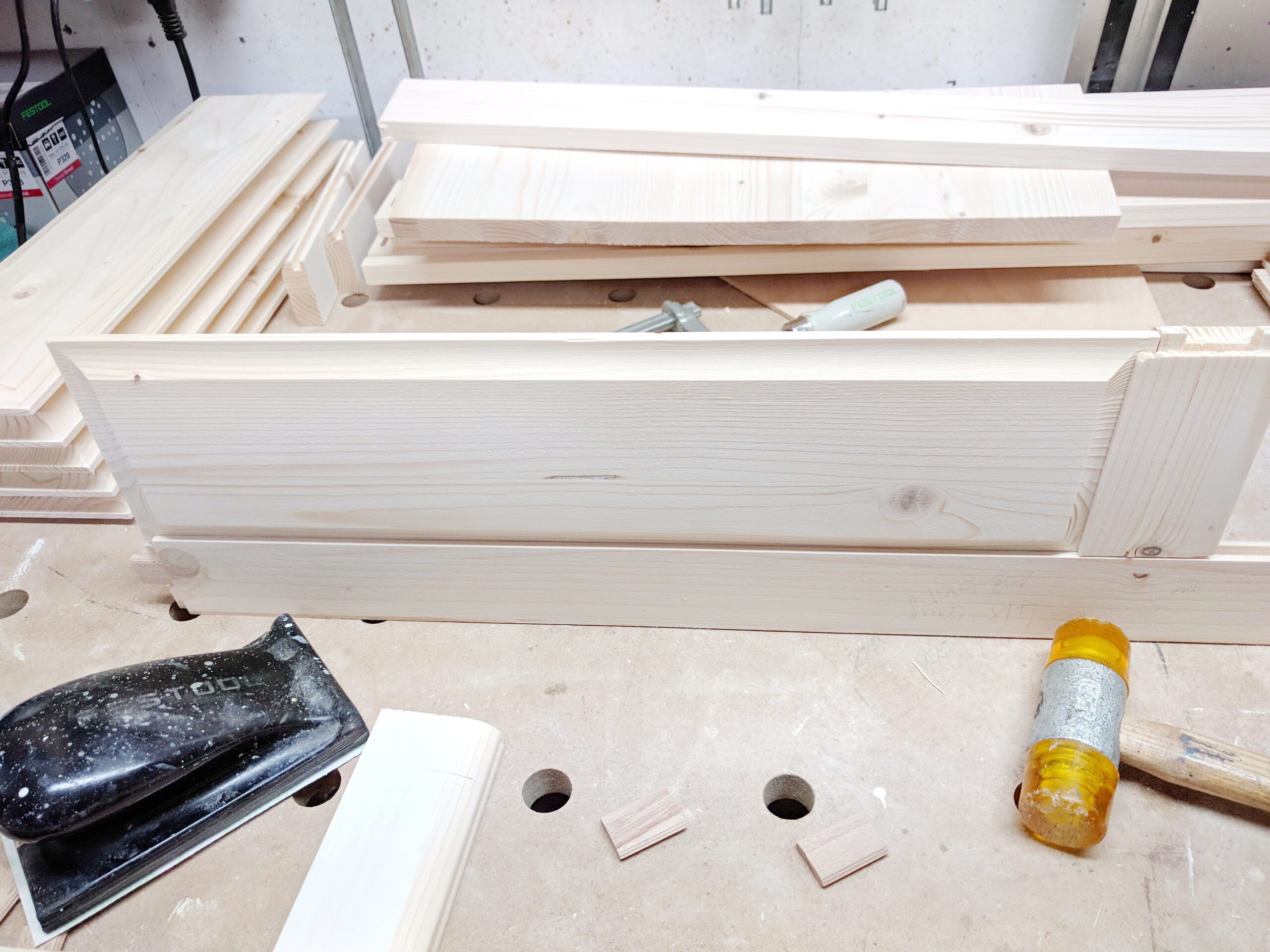 Die Rohteile sind bereits gehobelt und mit DOMINOS versehen.
