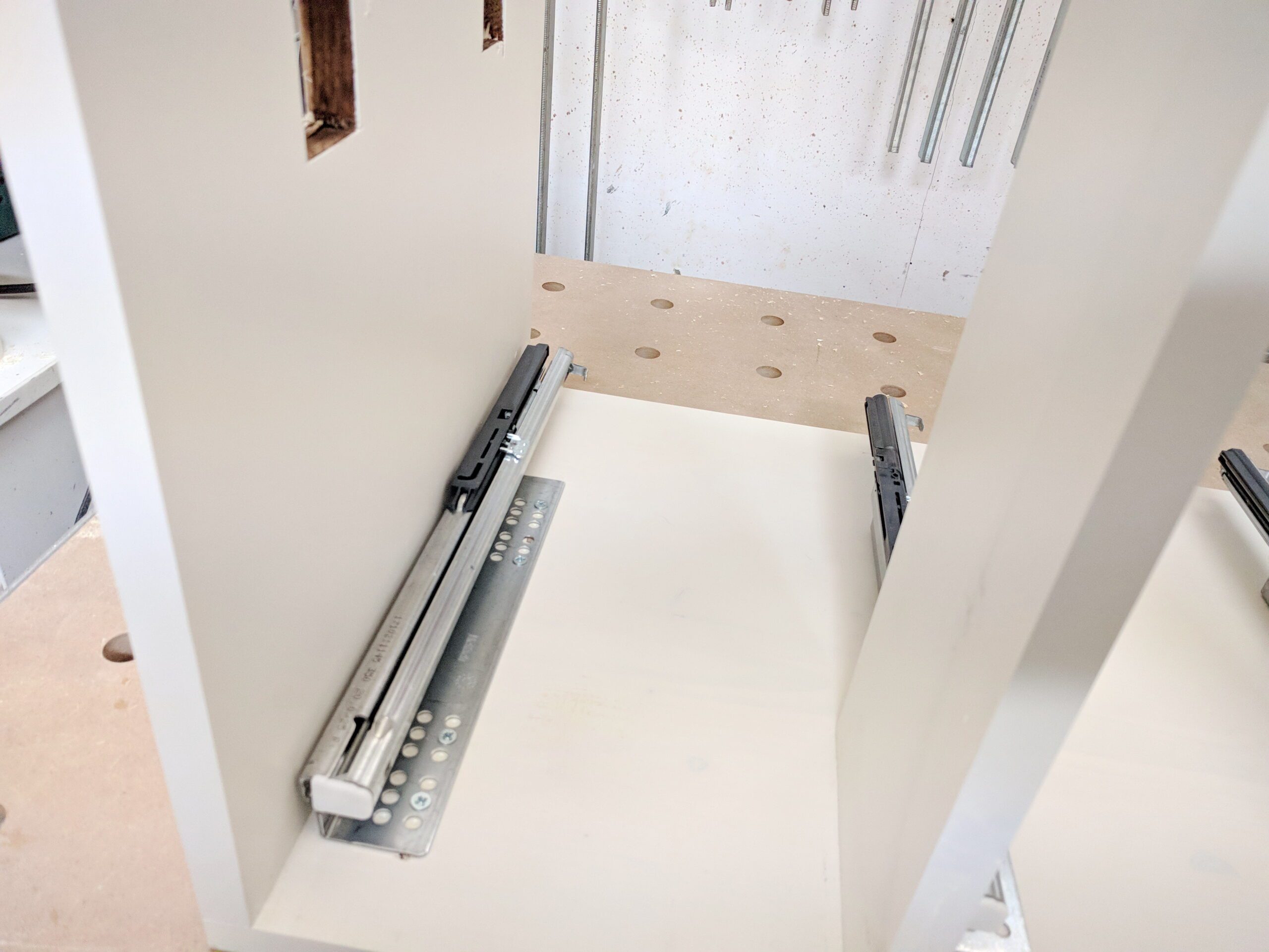 Na ja, ich dachte, dass dies "guten" Auszüge wesentlich besser sein werden als die herkömmlichen Teleskopschienen. Das stimmt aber keinesfalls. Zumindest für diesen Schrank.