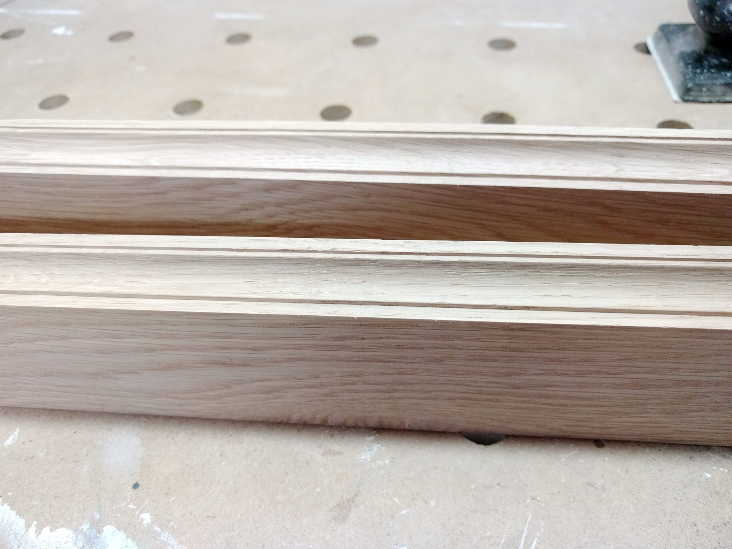Aus den schmalen Stücken der Eiche habe ich einen dekorativen Rand gefräst.