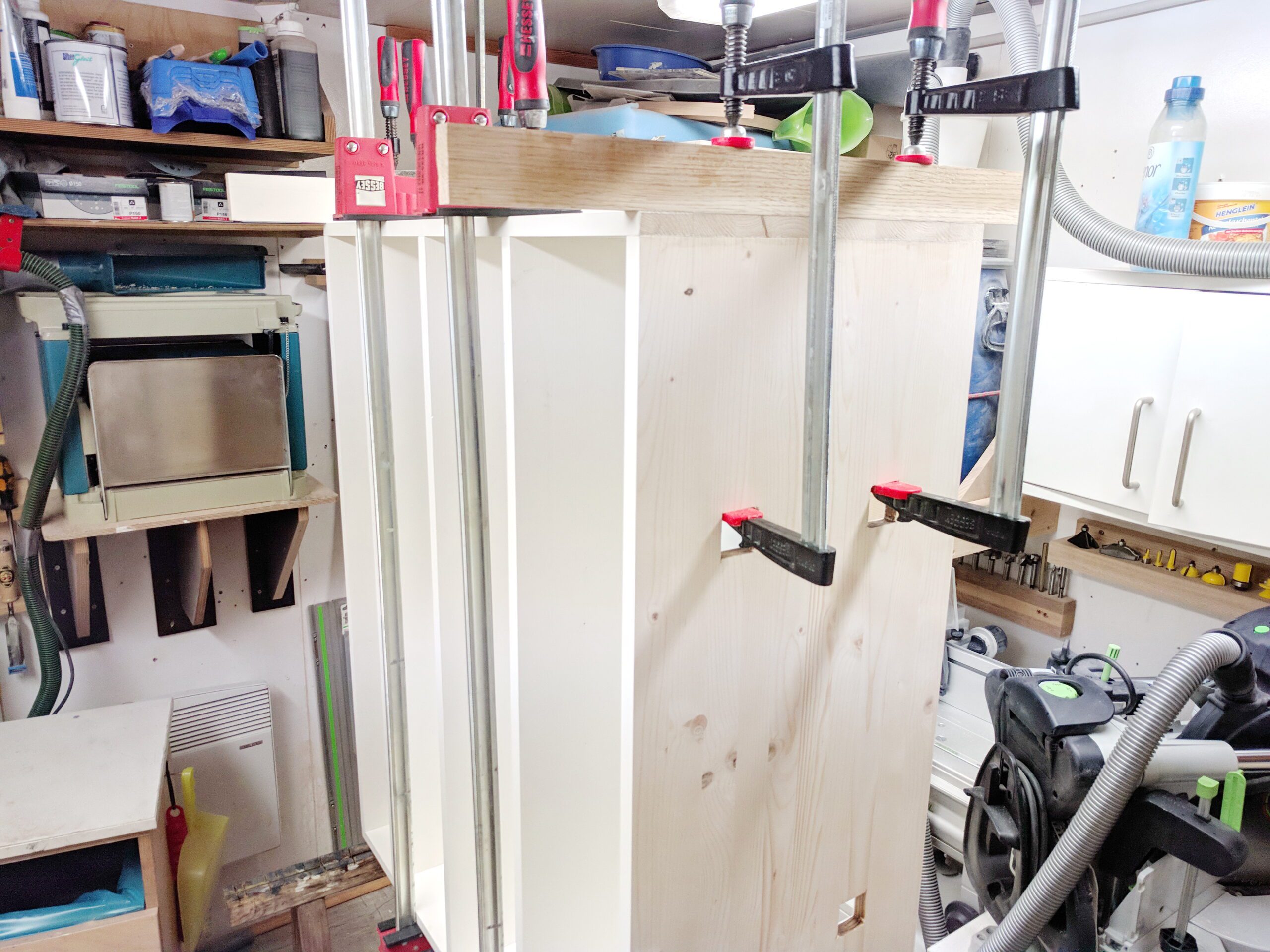 Warum Fichte? Ich will den Schrank nicht für die nächsten Jahrhunderte bauen. Viele Projekte "reiße" ich wieder ab, weil sich entweder meine Vorstellungen und Geschmack geändert haben oder der Zustand des Material es erfordert. Holzwerker halt...