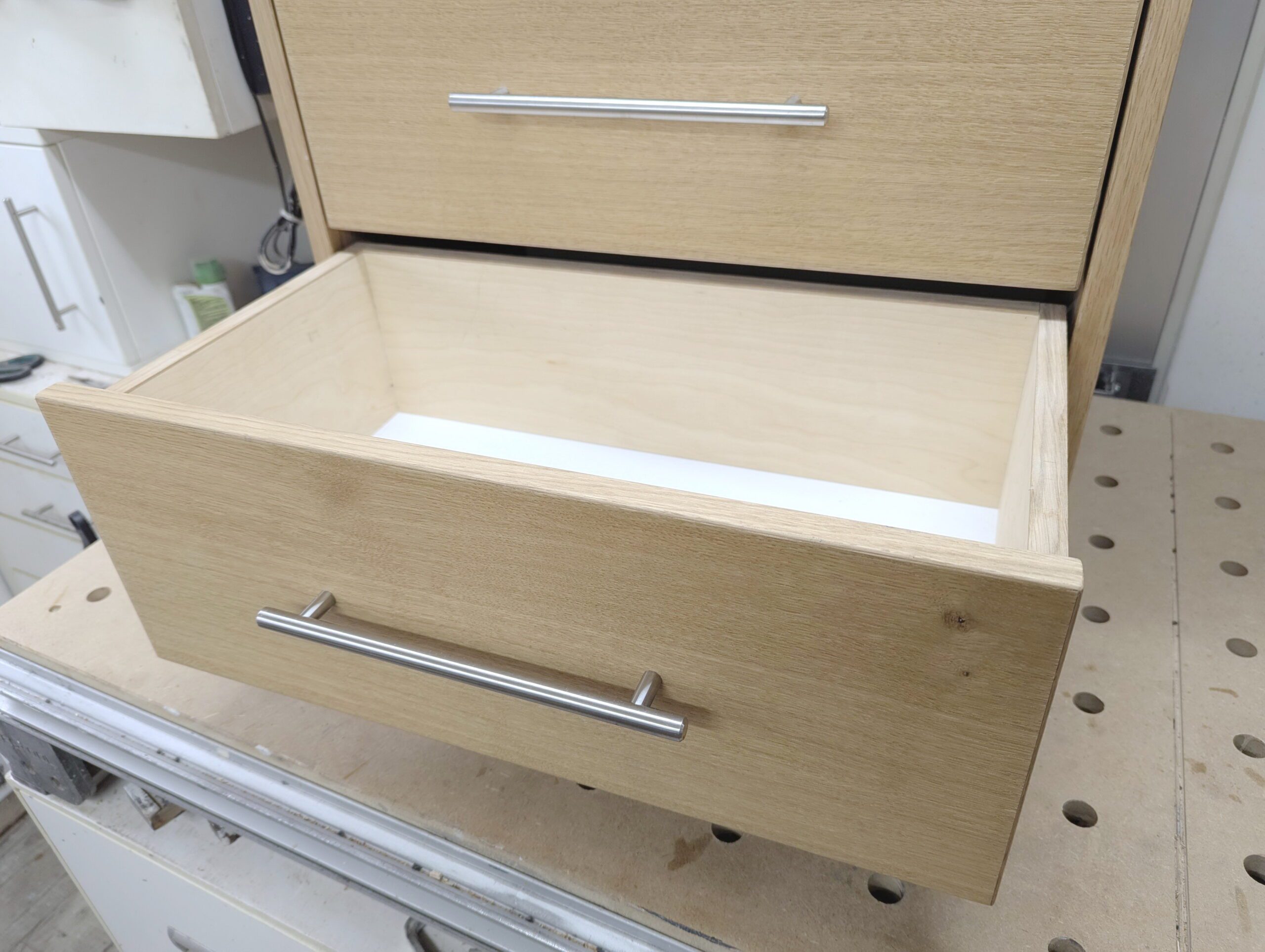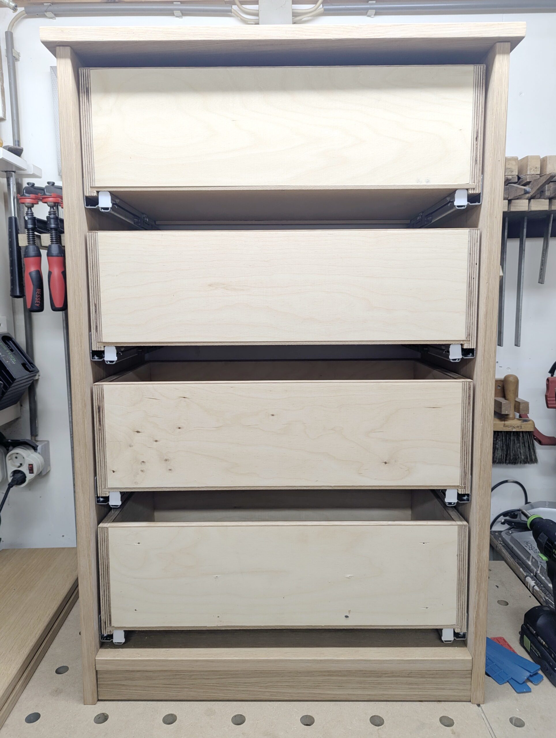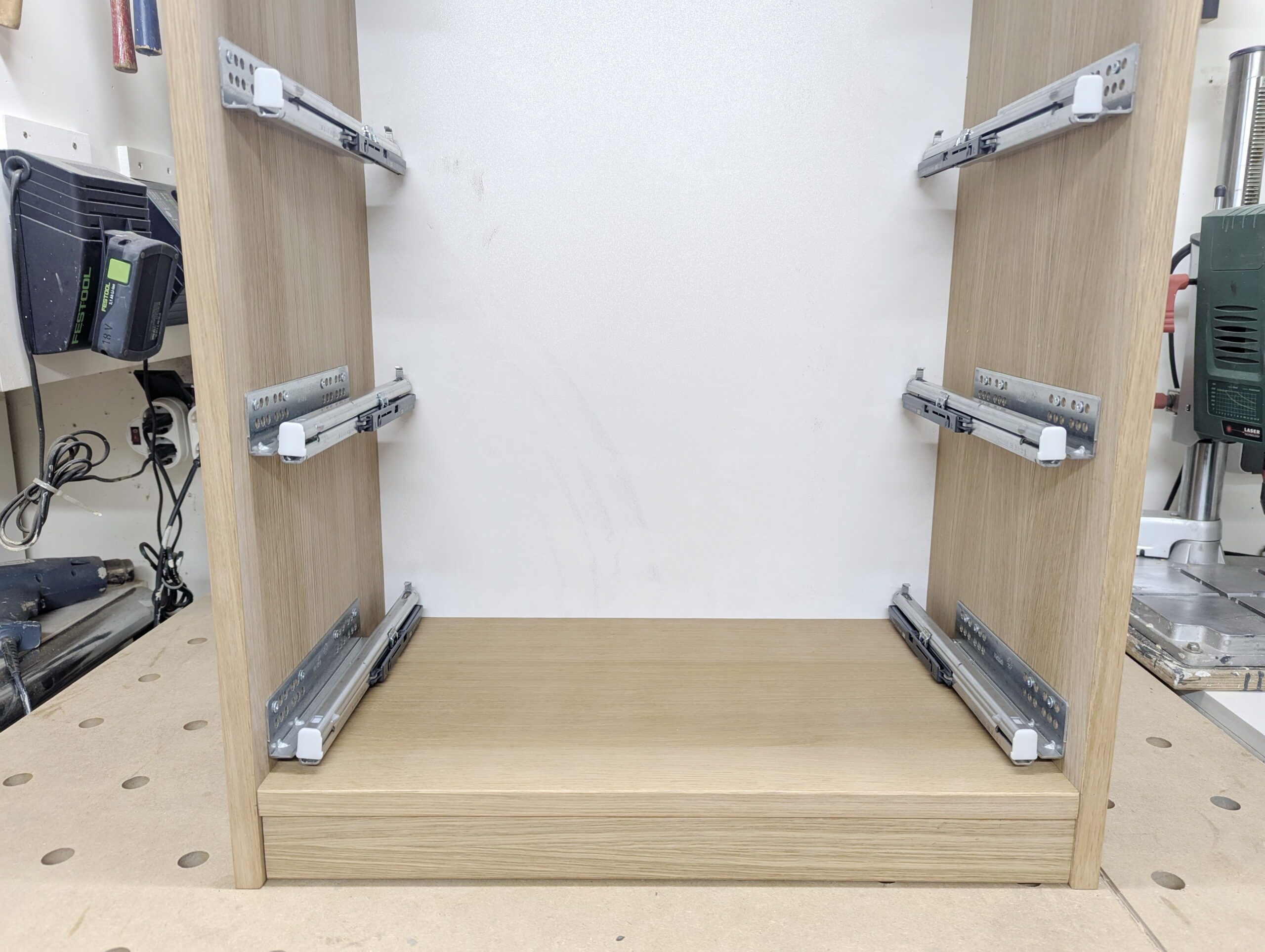 In diesem Projekt habe ich Hettich Vollauszüge QUADRO V6 Silent System eingebaut. Der Einbau ist etwas aufwändiger, aber das Ergebnis ist im Vergleich zu anderen Auszügen deutlich besser.