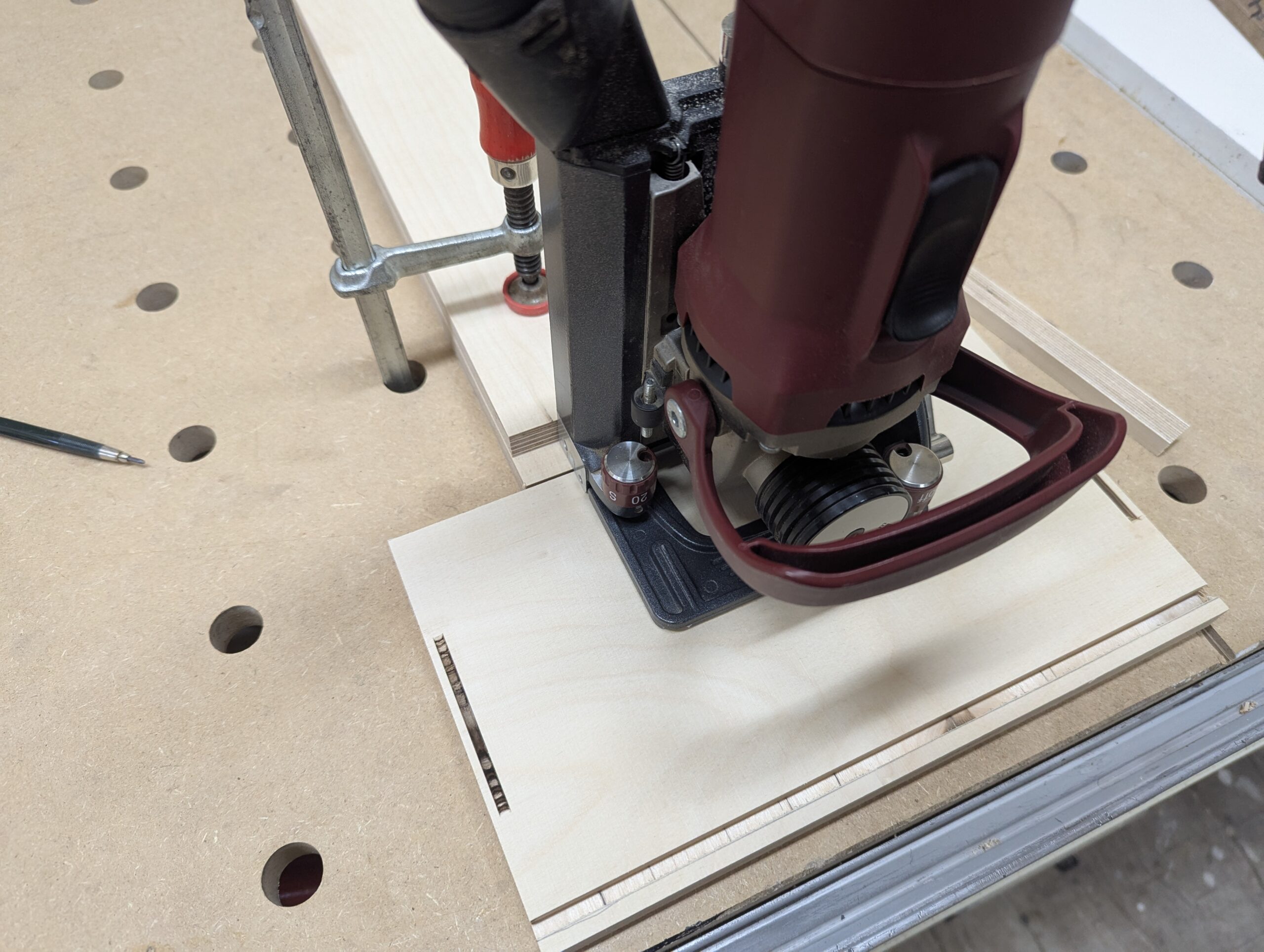 Auch die dünnen 15 mm Sperrholzteile für die Schubladen konnten ohne weitere Einstellungen oder Hilfsmittel gefräst werden.