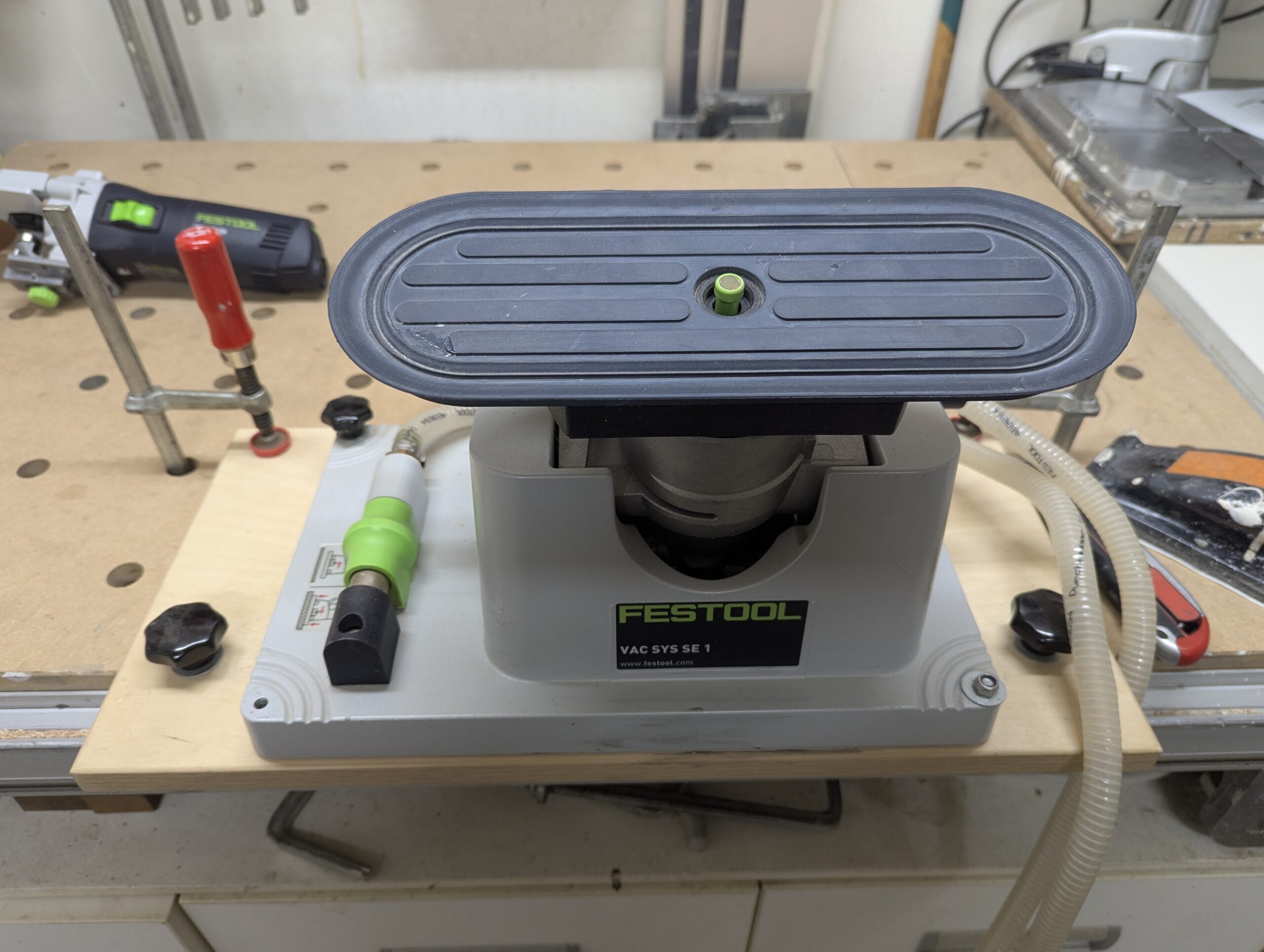 Bei der Größe dieser Teile ist das Festool-Vakuumsystem VAC SYS Set SE1 ideal. Kein Teil muss auf dem Tisch mit Spannvorrichtungen fixiert werden, und das Umspannen geht sehr schnell. Allerdings sollten alle verfügbaren Saugplatten mitbestellt werden.