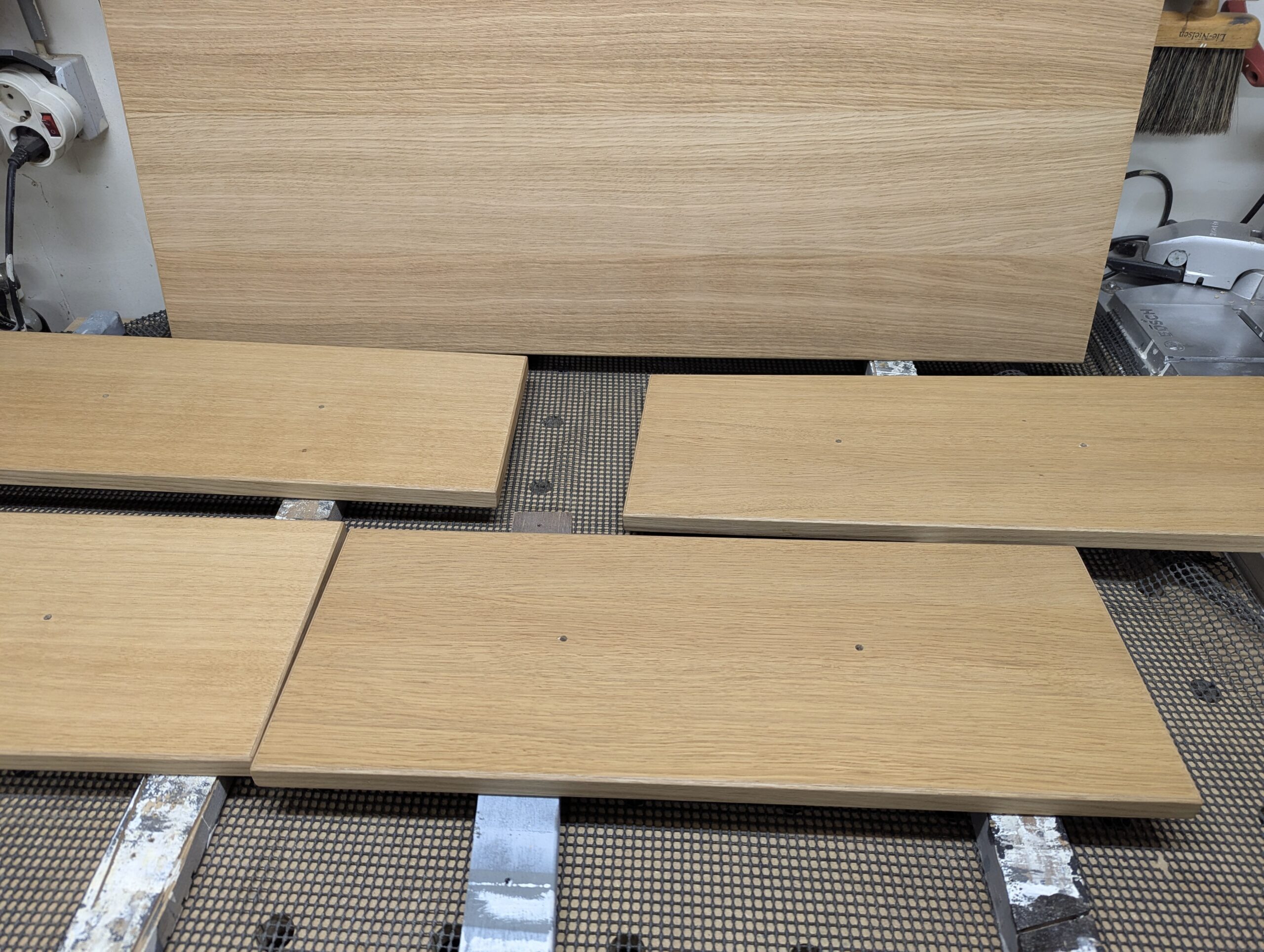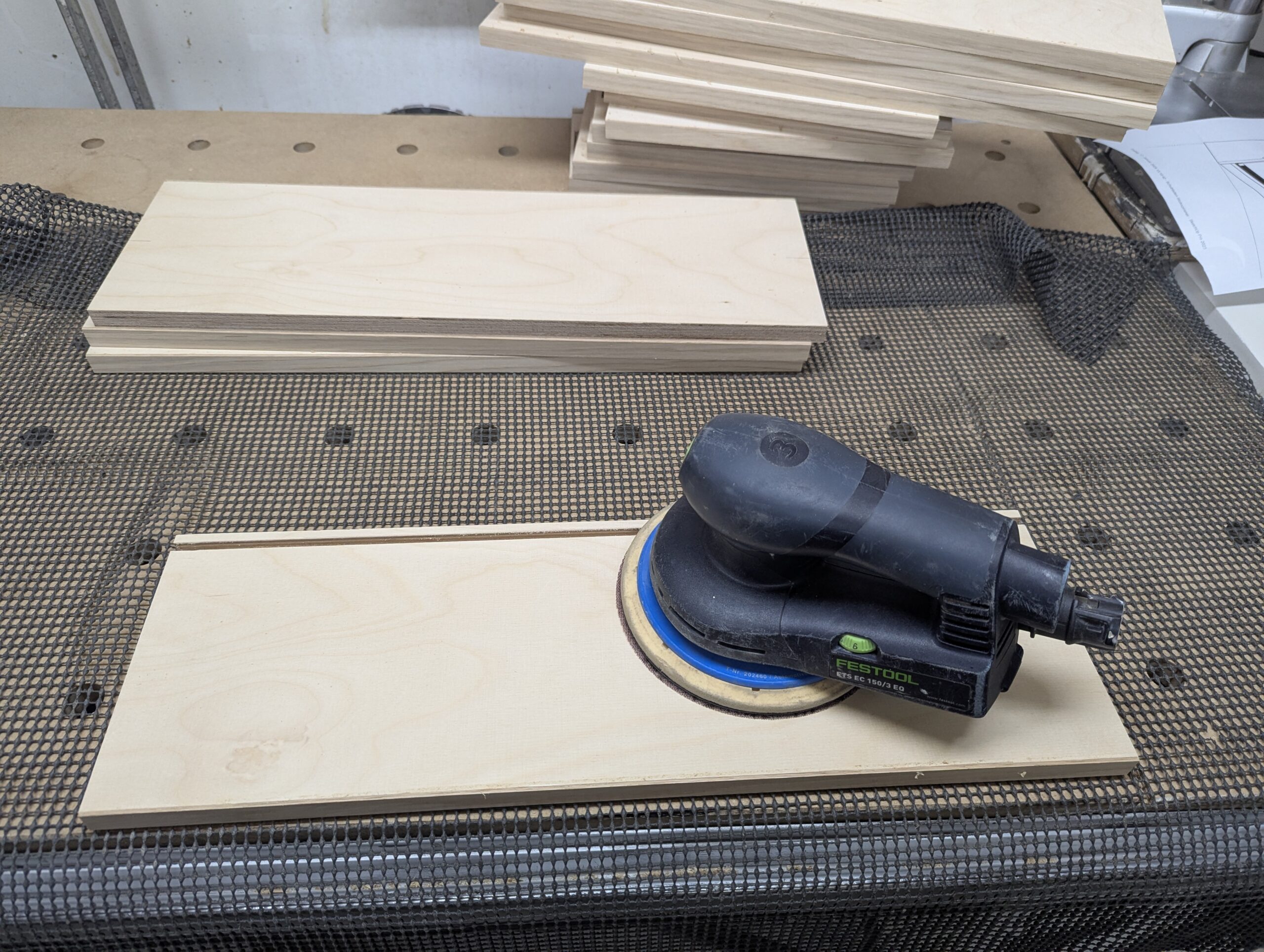 Nach dem Anfahren der Kanten und dem Fräsen der Lamellos habe ich alle Teile geschliffen.
