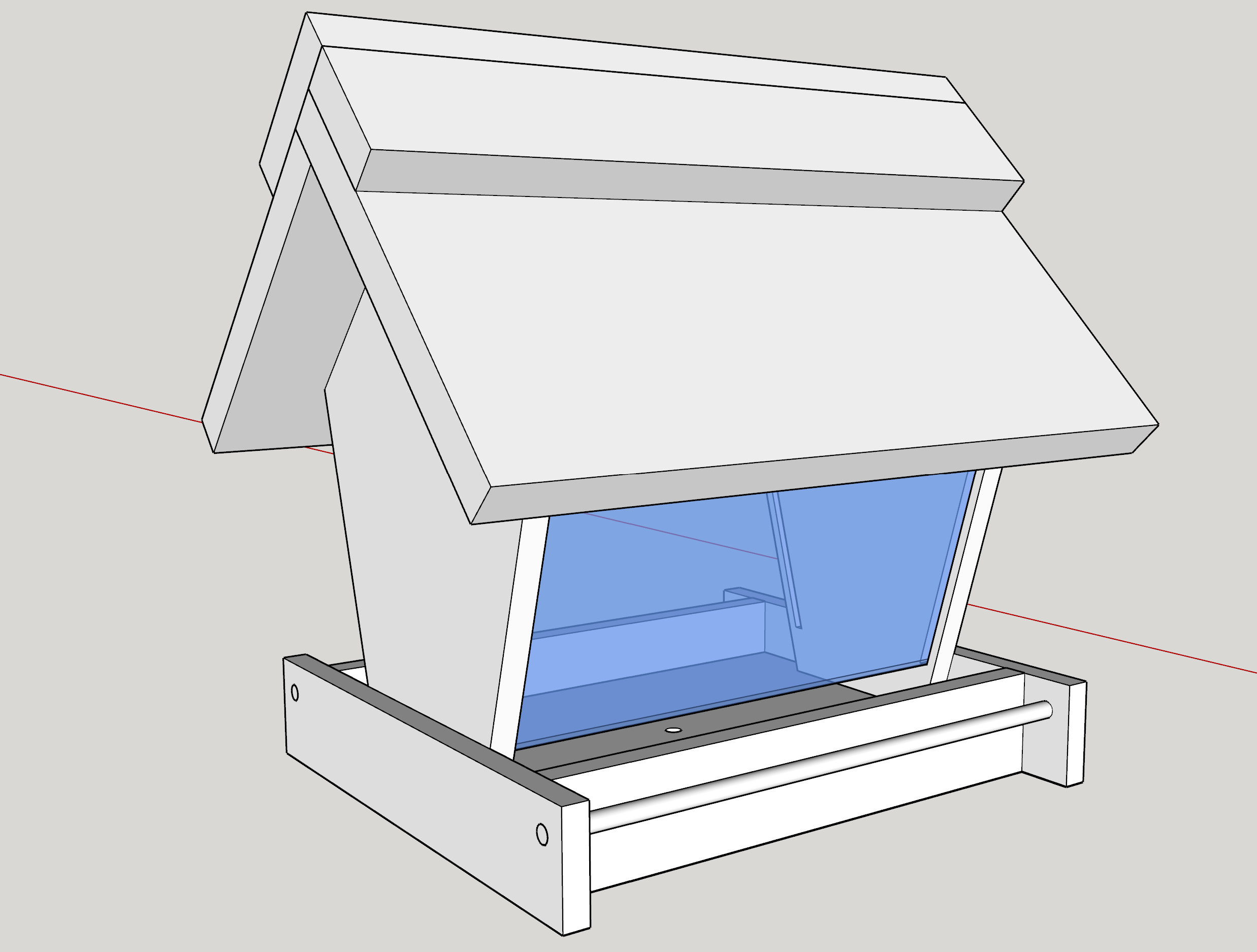 Dieses Vogelfutterhaus ist materialunabhängig. Nur die Materialstärke in Sketchup anpassen und schon ist der Plan fertig.