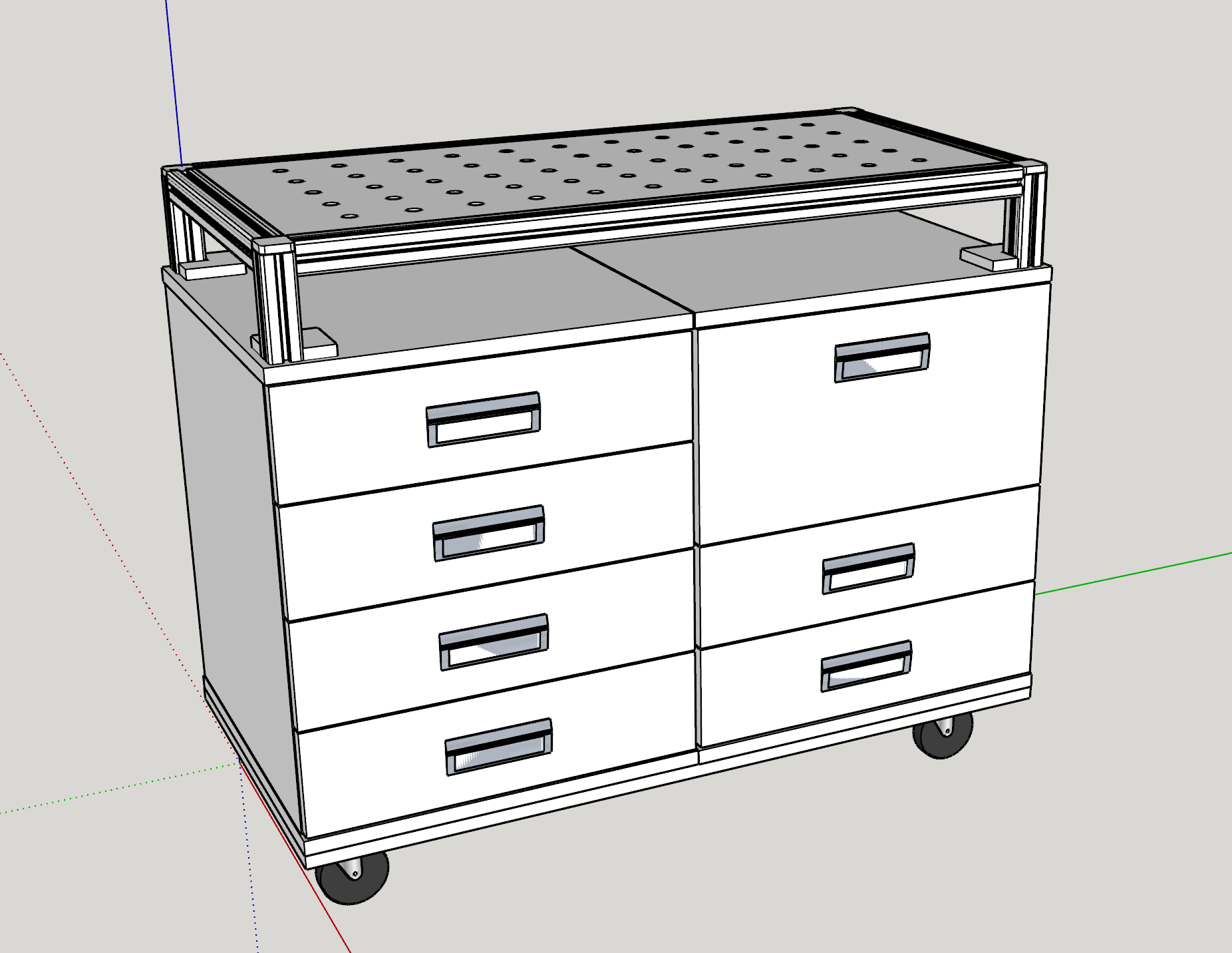 Diese Werkbank habe ich aus beschichteter Spanplatte gebaut und somit haben die Kanten eine ABS-Beschichtung.